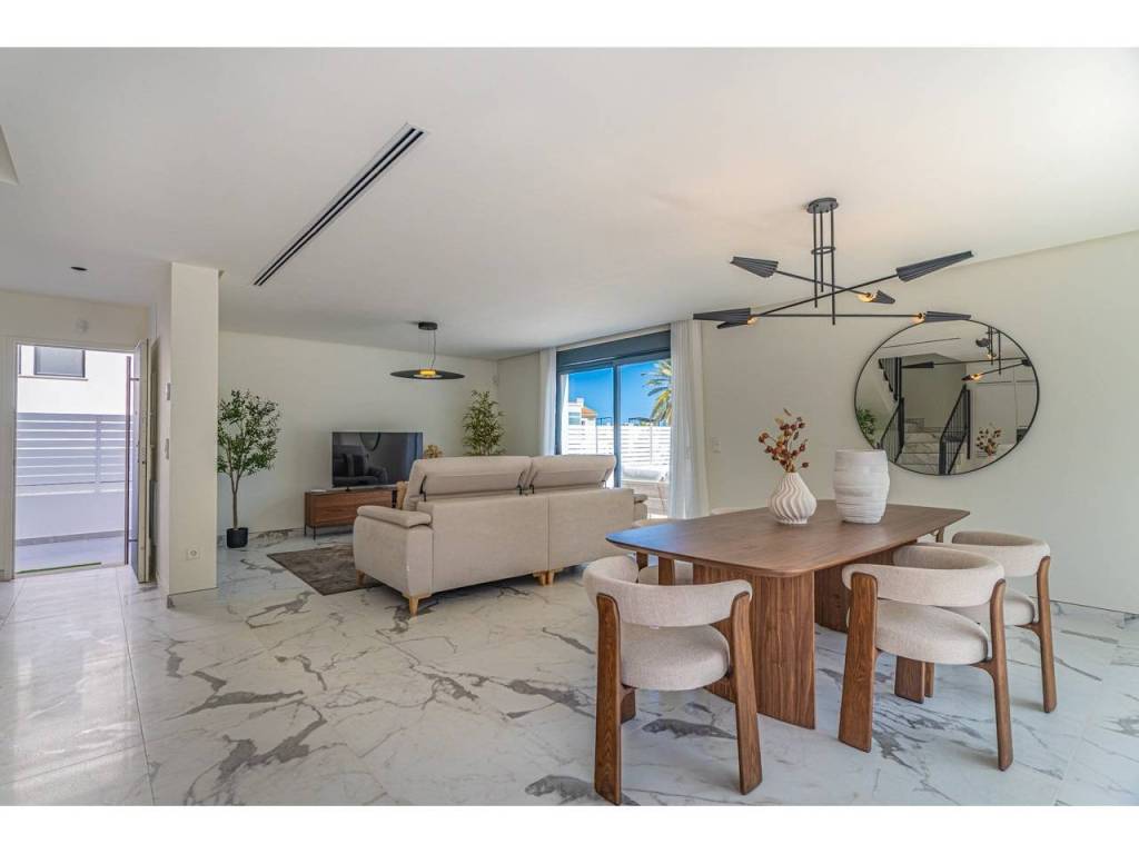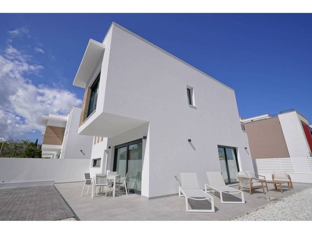This modern, newly built villa is located in the Tossal Gross area, a prime location that combines residential tranquility with proximity to the center of Dénia, the beach, and all essential services. The property stands out for its contemporary design and strategic south and southeast orientation, guaranteeing natural light throughout the day and offering unobstructed views of the Montgó Natural Park.On the main floor, the living space comprises a spacious living-dining room with direct access to the private terrace, a fully equipped open-plan kitchen, and a full bathroom. The upper floor, accessed by a staircase, features three double bedrooms with ample built-in wardrobes and two full bathrooms, one of which is en-suite in the master bedroom.The property sits on a plot with parking space for one or two vehicles and is part of a residential complex that offers a communal swimming pool and children's playground. Its location in Dénia allows you to enjoy an exceptional setting, recognized as a UNESCO Creative City of Gastronomy and famous for its more than 20 kilometers of coastline, which alternate between the extensive sandy beaches of Las Marinas and the rocky coves of Las Rotas. With the Montgó massif as a backdrop and excellent maritime connections to the Balearic Islands, this villa represents an ideal opportunity for those seeking quality of life and modern amenities on the Costa Blanca.