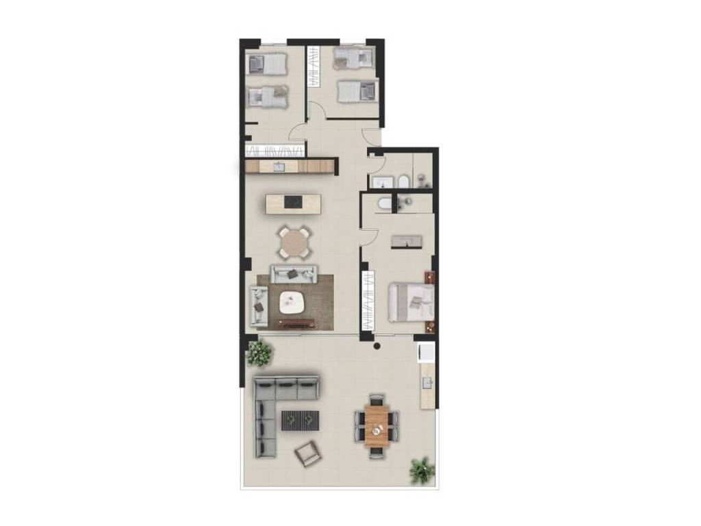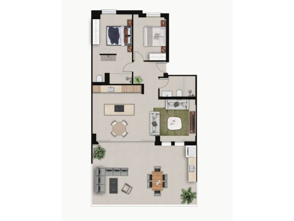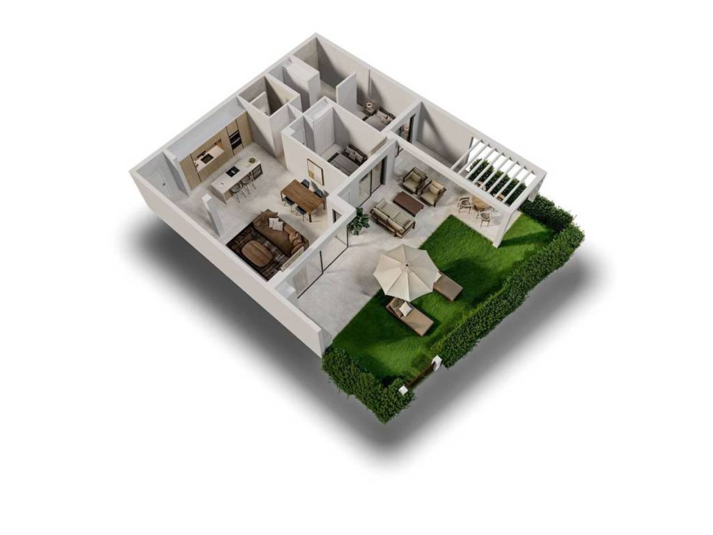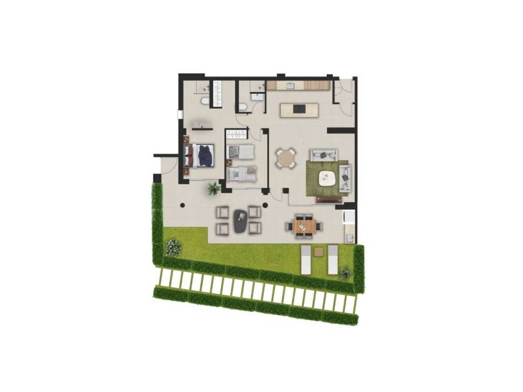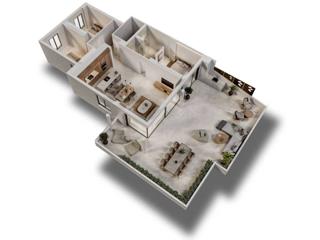 The architectural design integrates refined interior spaces with expansive outdoor living areas, employing natural tones and seamless transitions between indoor and exterior environments. Distinctive amenities include private garden access for ground-level units, elevated balconies overlooking dual perspectives on first-floor residences, and comprehensive views from upper-level apartments. All residences incorporate sophisticated elements such as outdoor culinary facilities, emphasizing both aesthetic refinement and functional practicality.