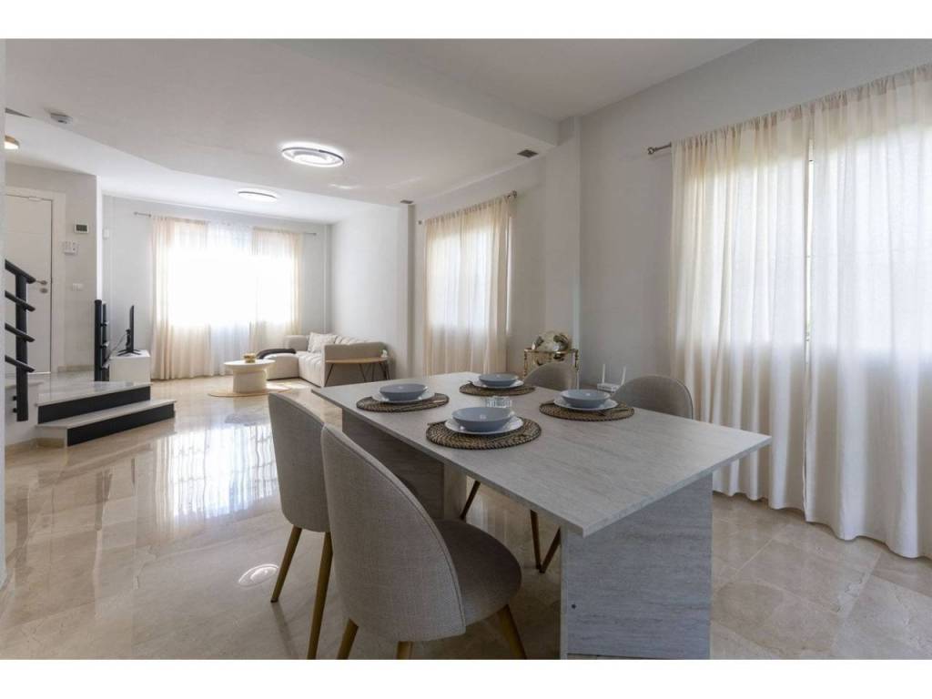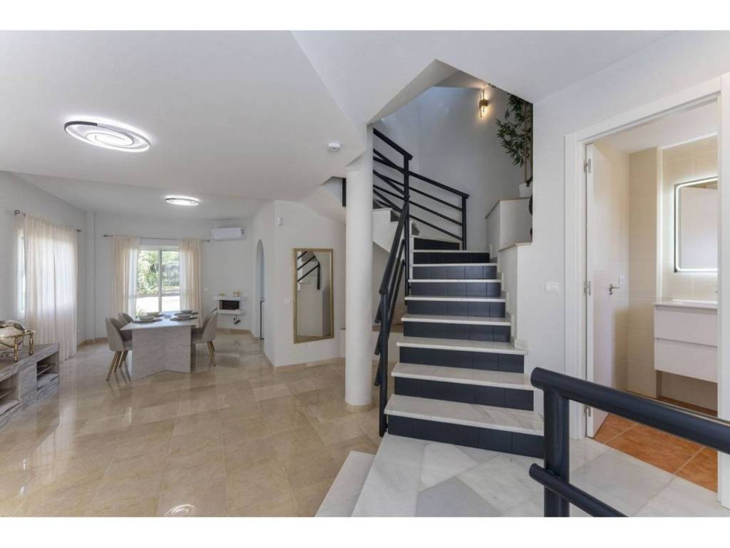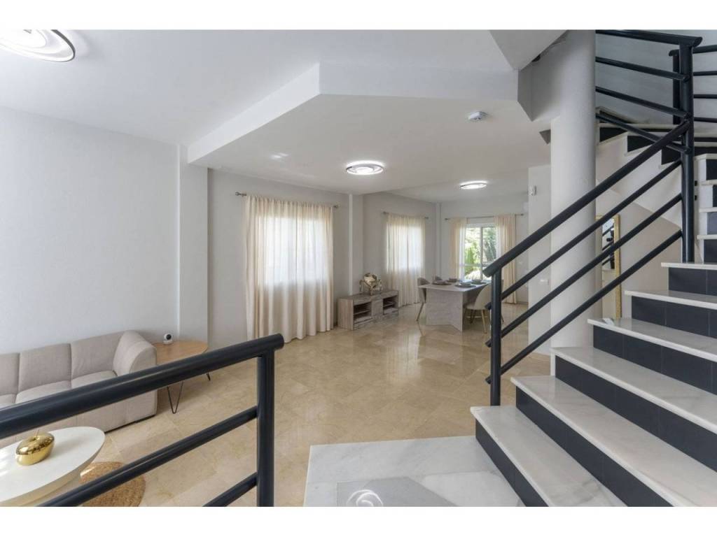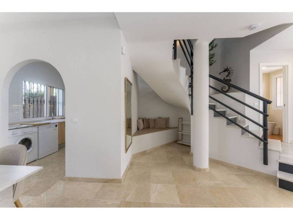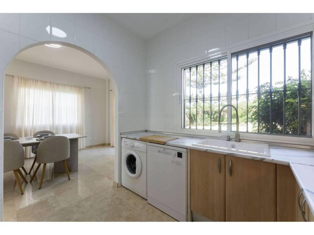 This is a beautiful semi-detached house in prime location close walking distance to the beautiful port of Cabopino and close to Cabopino Golf courses. The house is recently refurbished and with great natural light and a lovely well maintained small community of 5 houses with common pool and garden area.
