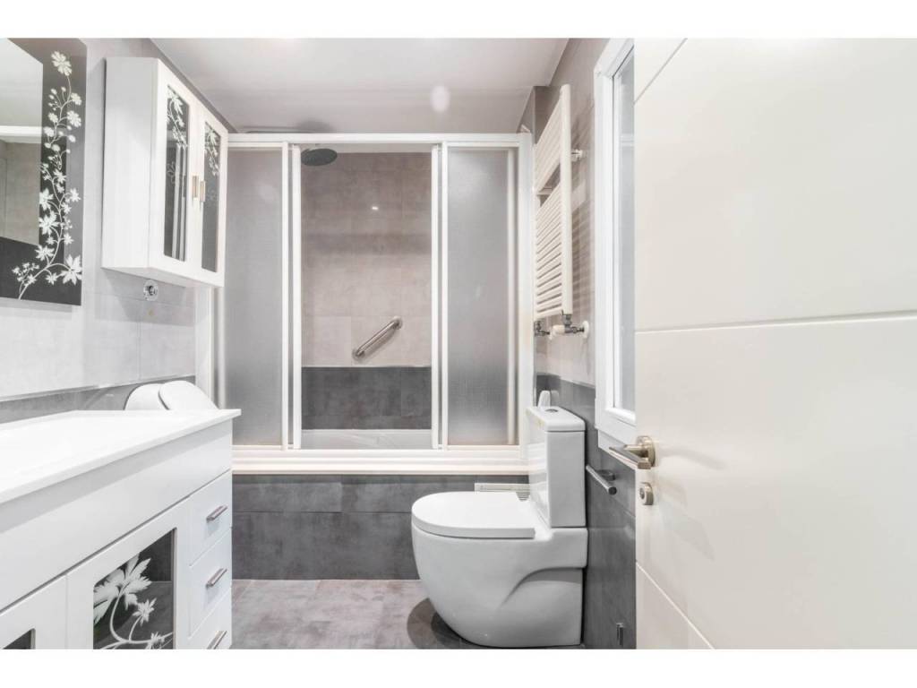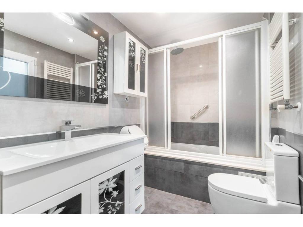 - Finalmente, el baño (4,1 m2), completo, con bañera de hidromasaje, toallero eléctrico, lavabo, armario con espejo y urinario.