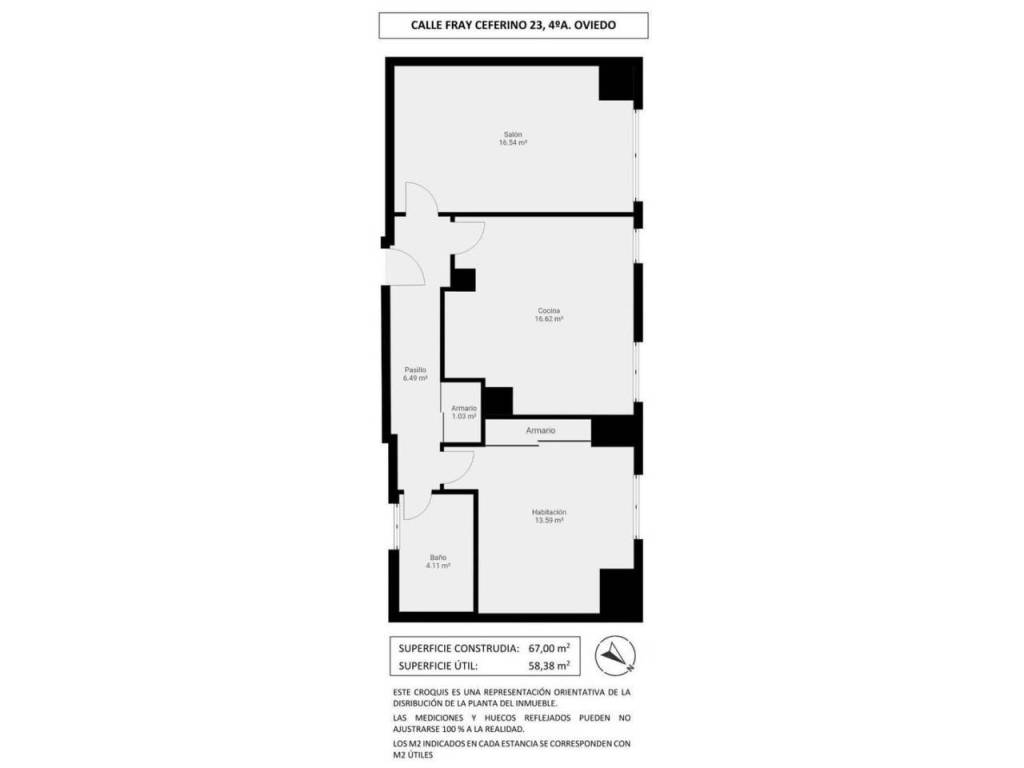 Precioso piso reformado, 67 m2 (s/ catastro), AMPLIA HABITACIÓN DOBLE (EL PISO TENÍA DOS EN ORIGEN. SERÍA POSIBLE RECUPERAR ESAS DOS HABITACIONES CON OBRA) y plaza de garaje con acceso desde el ascensor. En c/ Fray Ceferino, en una de las mejores zonas de la ciudad junto a la c/ Uría, Estación de tren y Alsa, Salesas y muy cerca del Parque de San Francisco y de lugares de interés cultural. Además, cafeterías, hoteles, restaurantes, oficinas bancarias… es decir, todo tipo de servicio vital en las proximidades.