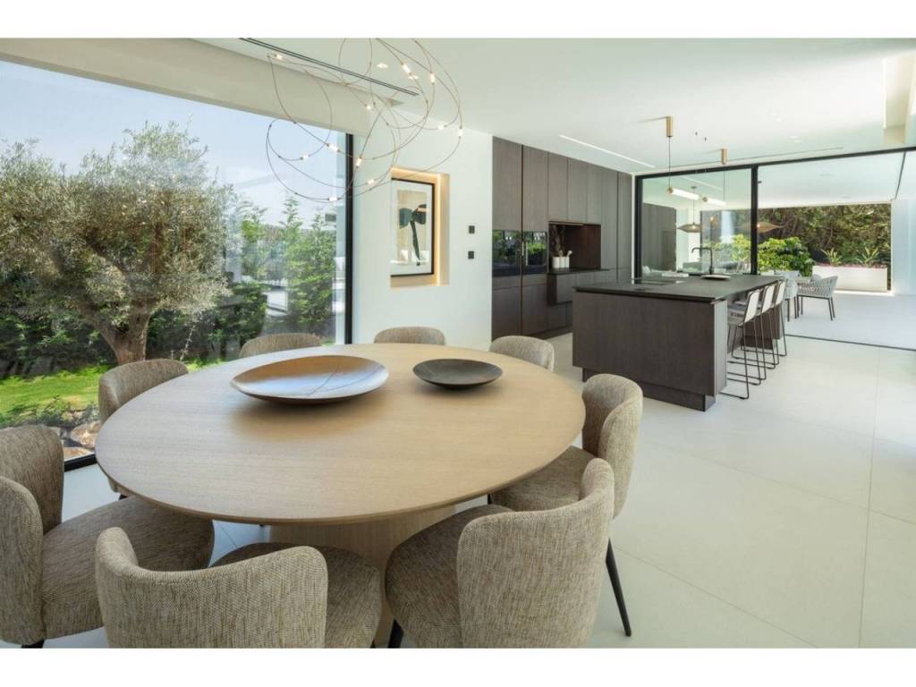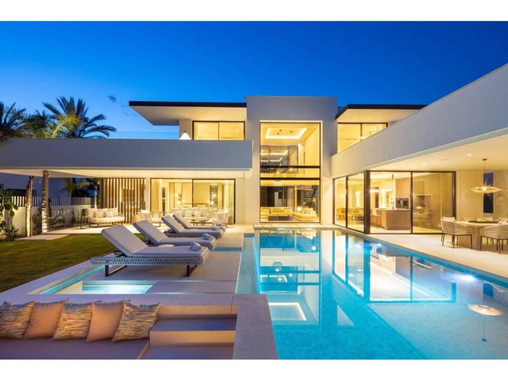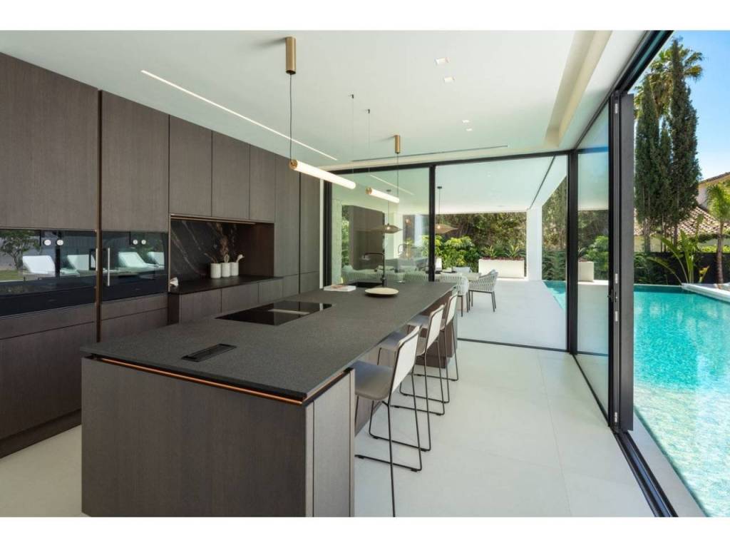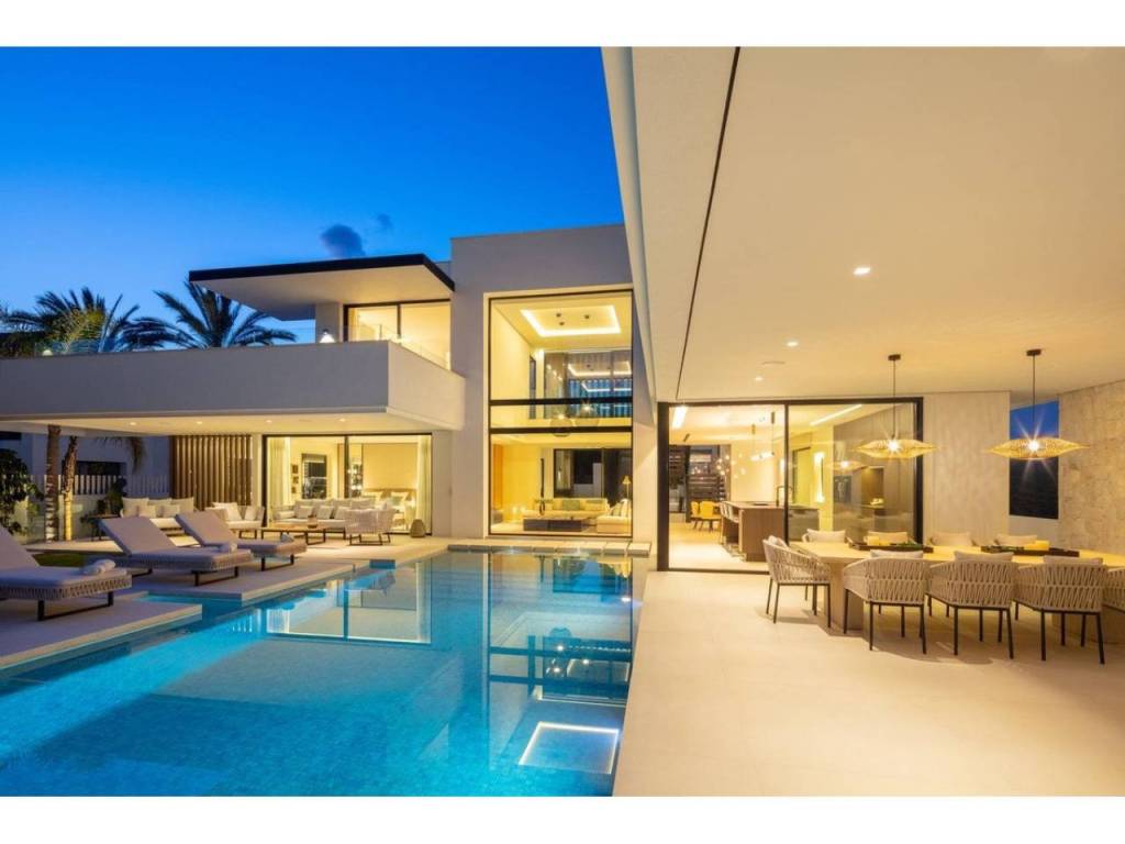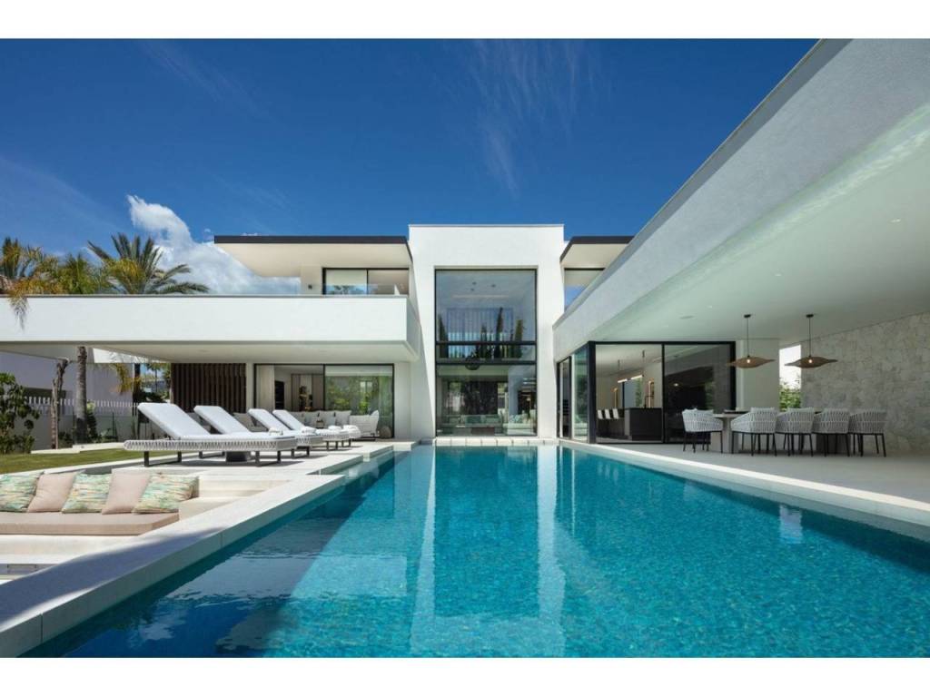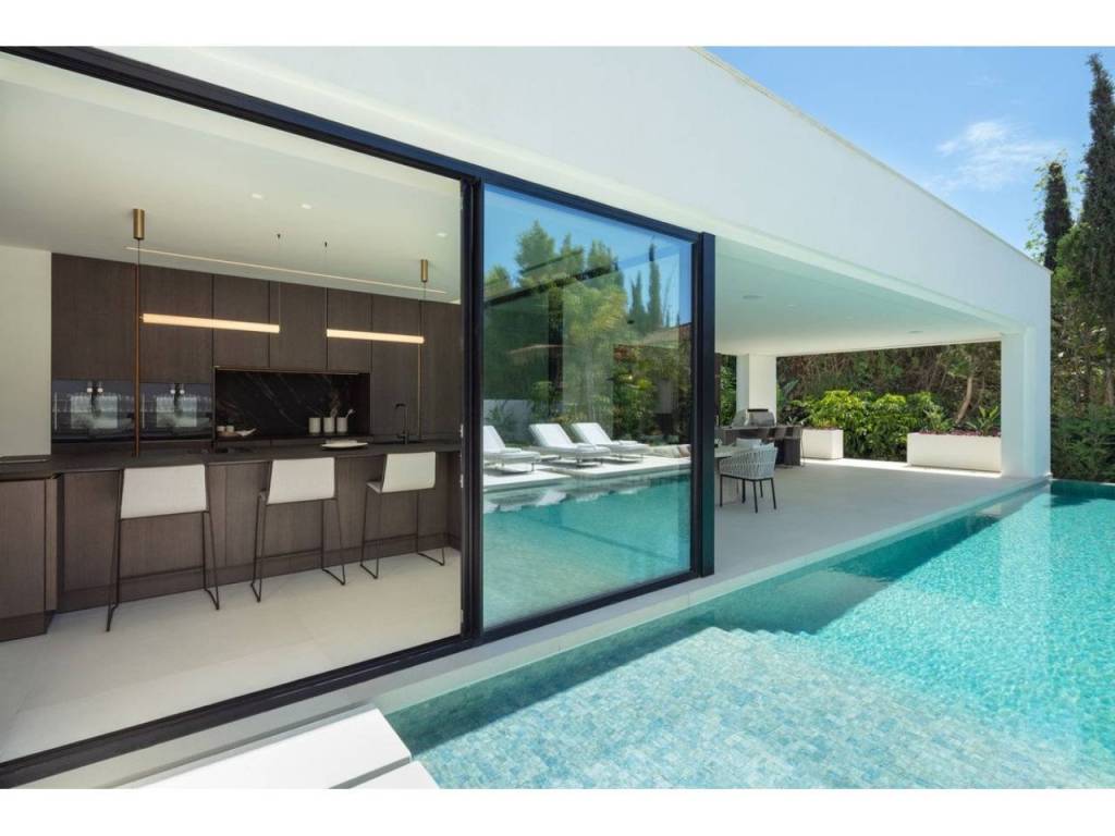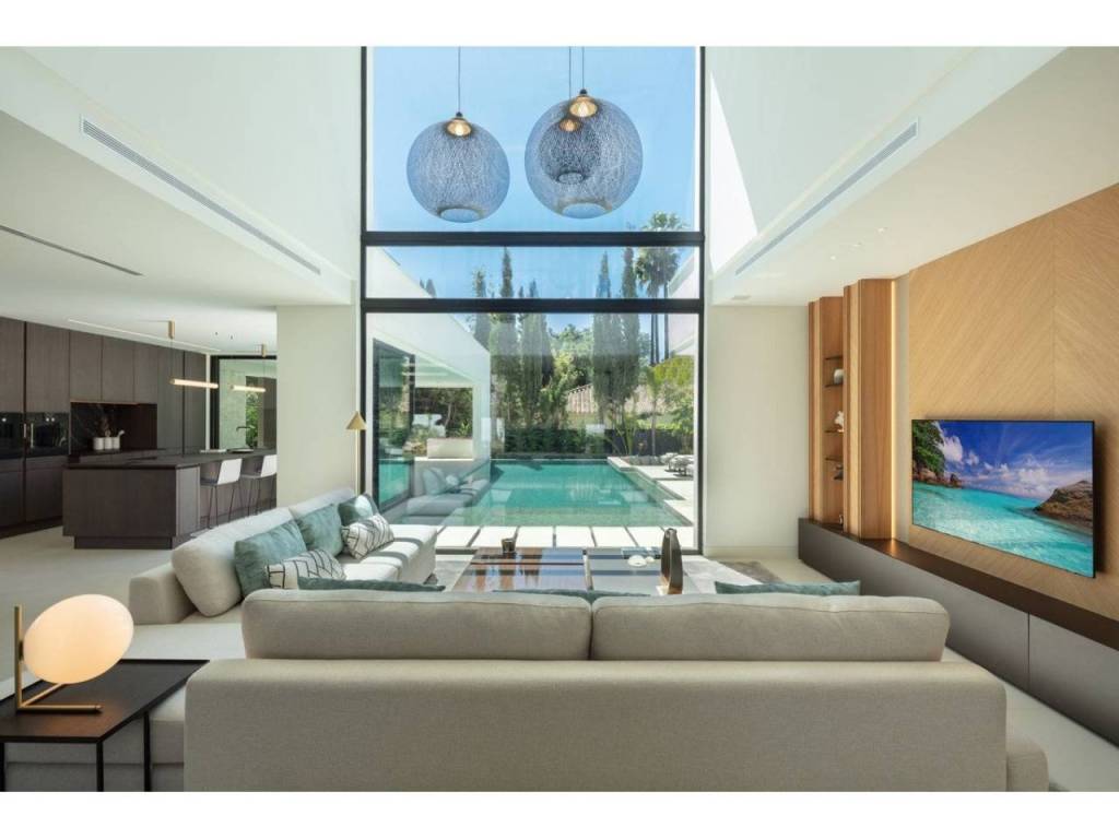 Nestled in the prestigious enclave of Las Brisas within Nueva Andalucía, Villa Sirius stands as a premier example of contemporary architectural excellence. This sophisticated residence, offers an expansive 476 m² of built area set upon a generous 1.200 m² plot that prioritizes both privacy and style. The property is defined by its seamless integration of indoor and outdoor environments, utilizing floor-to-ceiling windows throughout to create a bright, airy atmosphere that flows naturally from the living spaces to the beautifully landscaped gardens and private swimming pool.