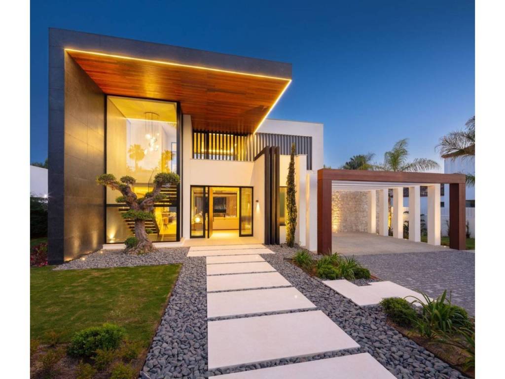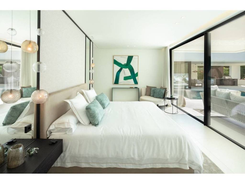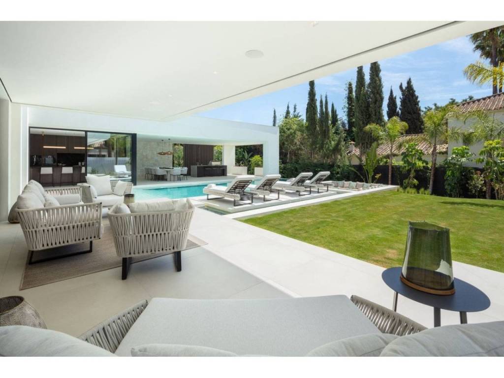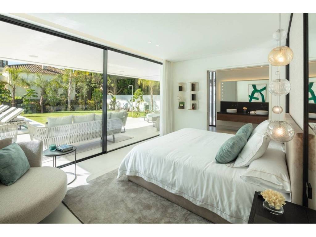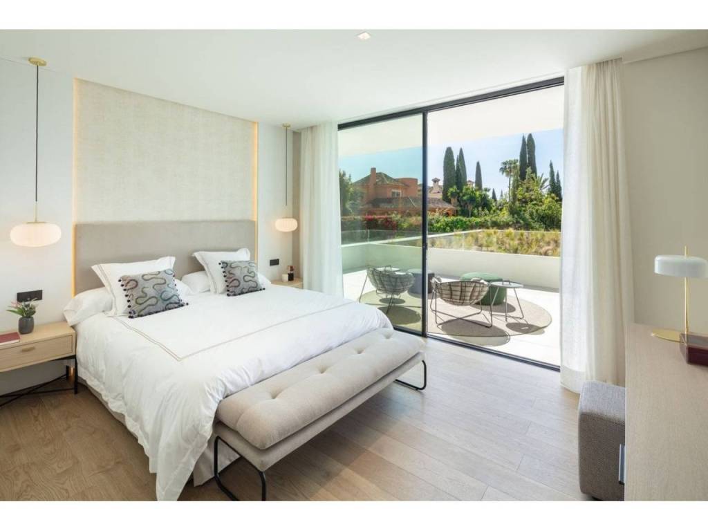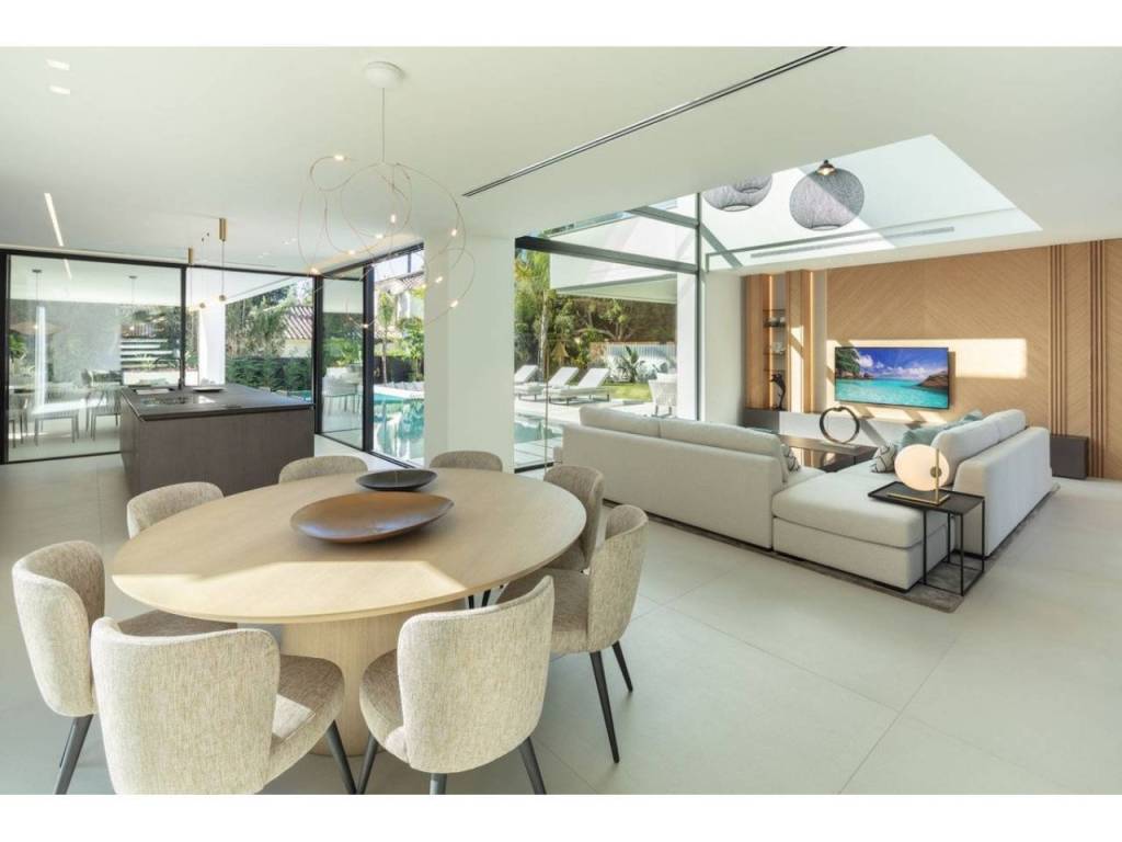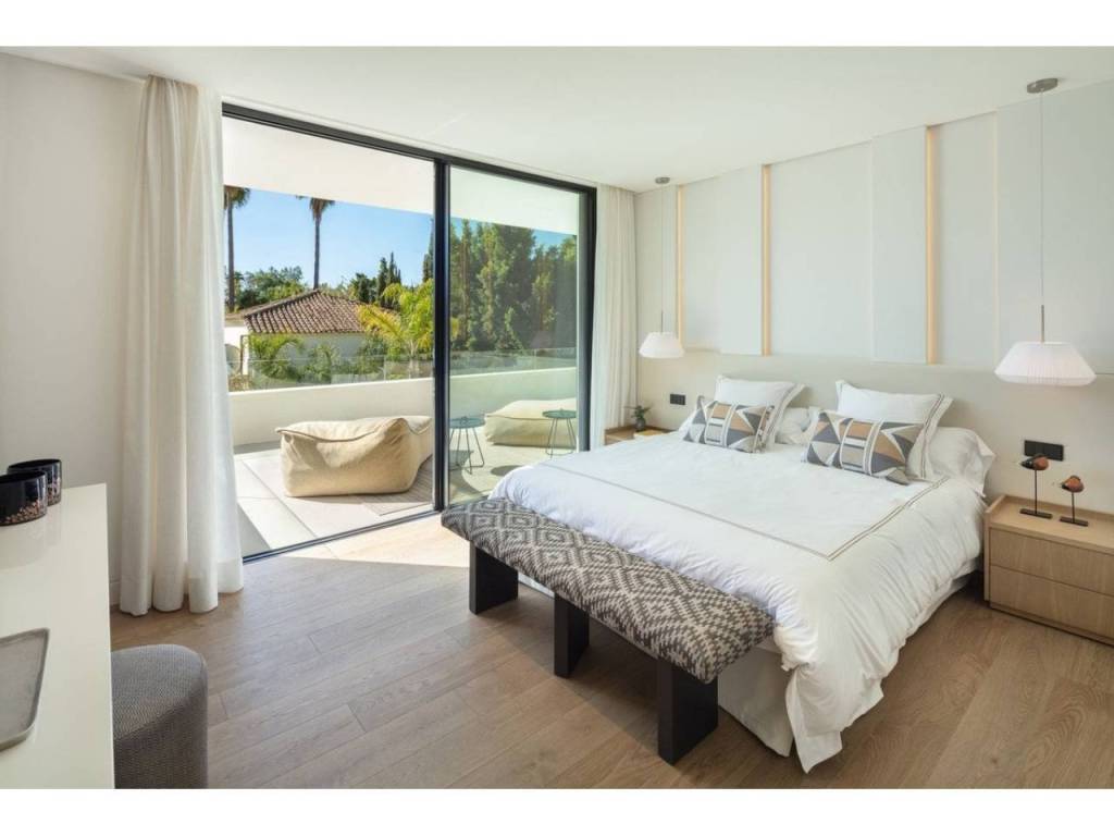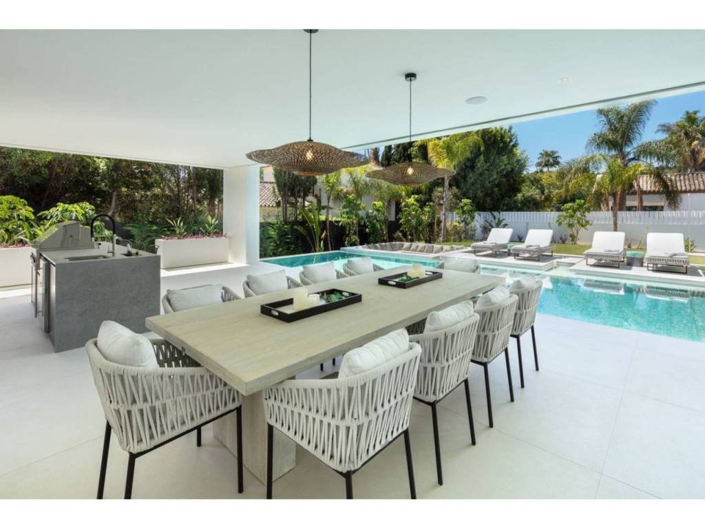 Nestled in the prestigious enclave of Las Brisas within Nueva Andalucía, Villa Sirius stands as a premier example of contemporary architectural excellence. This sophisticated residence, offers an expansive 476 m² of built area set upon a generous 1.200 m² plot that prioritizes both privacy and style. The property is defined by its seamless integration of indoor and outdoor environments, utilizing floor-to-ceiling windows throughout to create a bright, airy atmosphere that flows naturally from the living spaces to the beautifully landscaped gardens and private swimming pool.