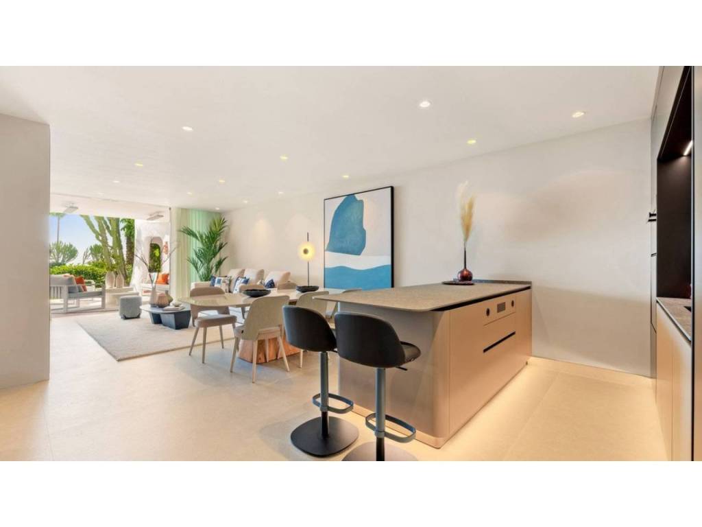 Step into luxury with Apartment Venus, a stunning ground floor apartment in the sought-after area of Costalita, on Marbella's prestigious New Golden Mile. This south-facing gem has undergone a complete renovation, presenting a modern, open-plan living space that offers 3 bedrooms and 2 bathrooms. With a 140 m² interior and a spacious 35 m² terrace, this apartment is designed to provide the ultimate in comfort and elegance.