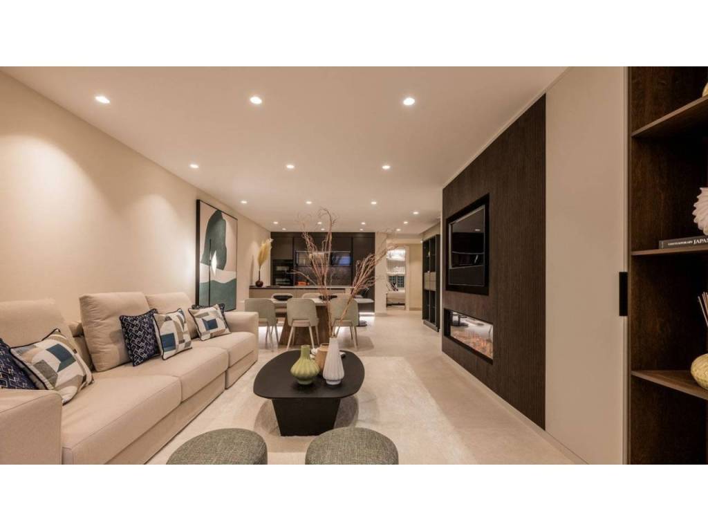 As you enter this immaculate apartment, you're immediately greeted by an open-concept living area flooded with natural light. The design seamlessly blends modern sophistication with a functional layout, offering ample space for both relaxation and entertaining. The property has been finished to the highest standards, showcasing tailormade wardrobes, sleek elegant floors, and premium features like an electric fireplace and Bang & Olufsen sound system that elevate the living experience.