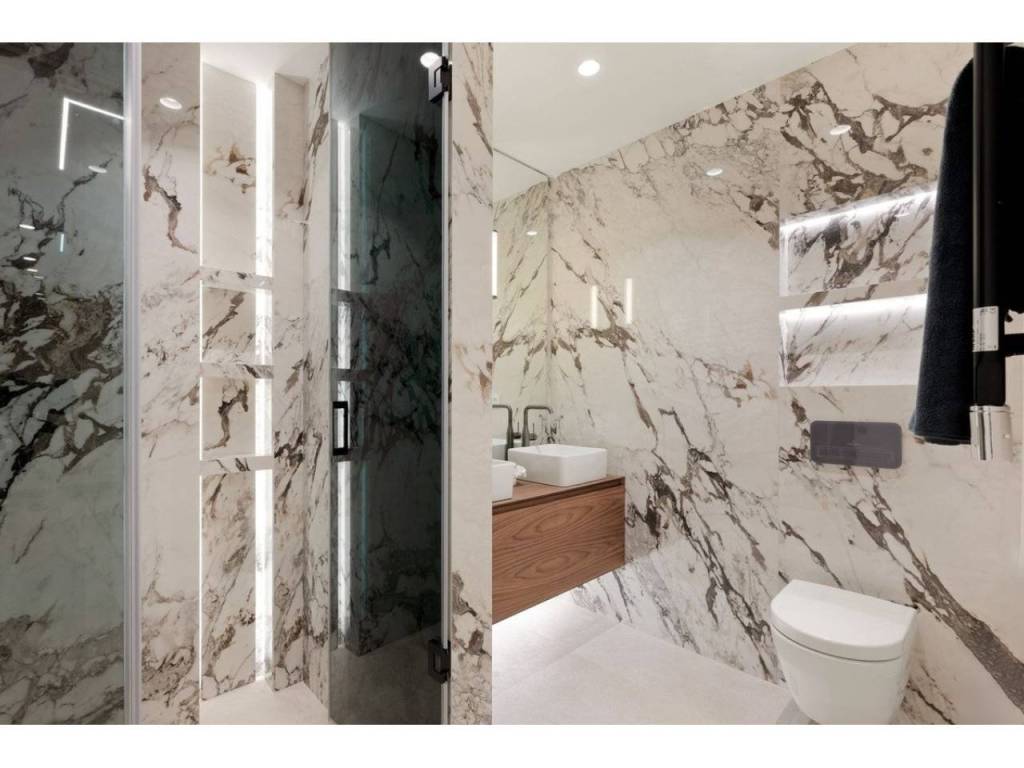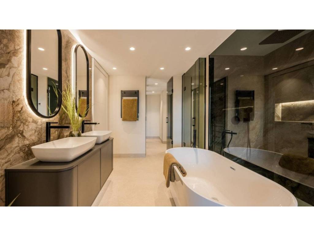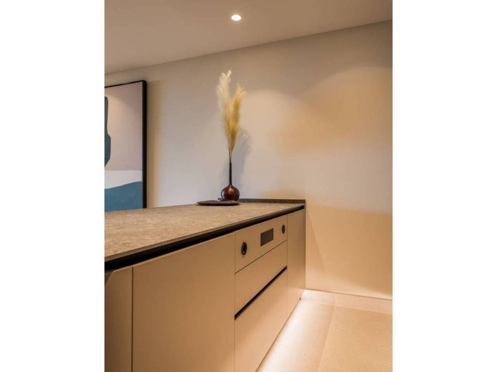 The brand-new designer kitchen is a chef's dream, fully equipped with top-of-the-line Miele appliances, combining cutting-edge technology and style. The living room opens directly to the covered, private terrace, where you can enjoy sea views while sipping your morning coffee or unwinding after a busy day. The terrace provides the perfect space for alfresco dining or simply relaxing in the Mediterranean breeze.