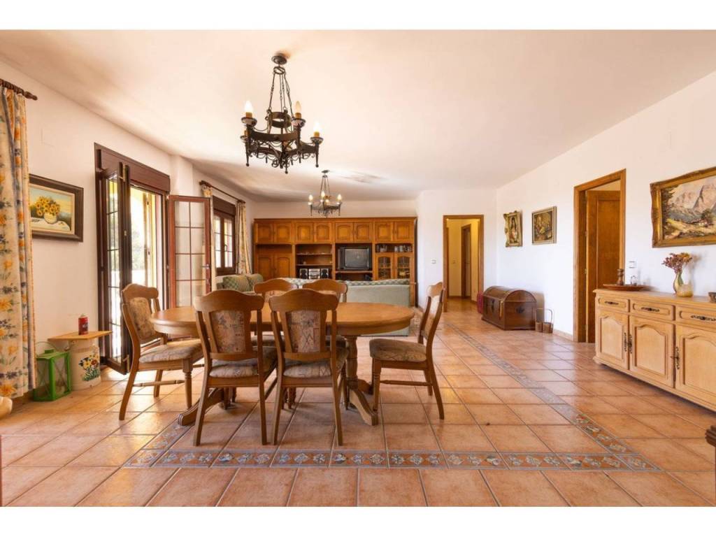 The property was built in 2004 and has a living area of approximately 382 m². It is surrounded by its own fenced grounds of 60 hectares, which include around 1,000 almond and olive trees. The finca has seven rooms, including several bedrooms, and three bathrooms plus a guest toilet.