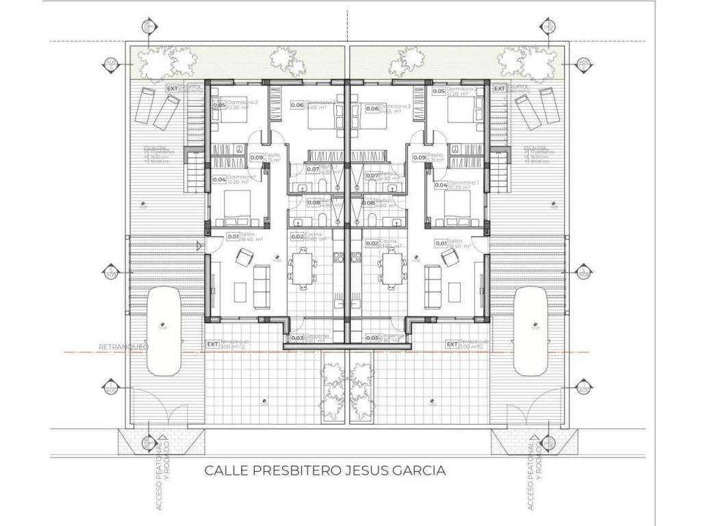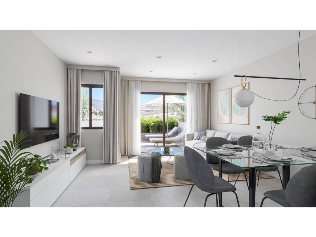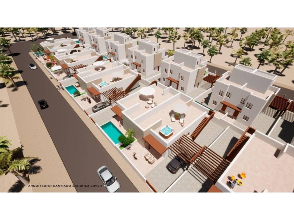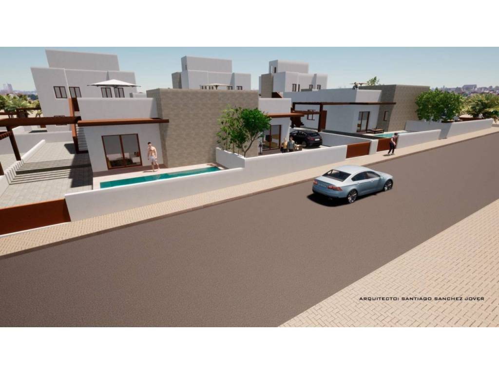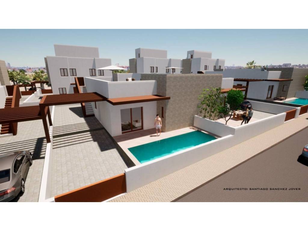 ALONDRA RESIDENTIAL: A development of 12 semi-detached, single-story villas located in the Los Caleñares Urbanization in Puerto de Mazarrón, a quiet yet central area, very close to the coast and with all amenities within easy reach. The homes have a constructed area of 88.30 m2 and feature a comfortable, functional, and bright layout.