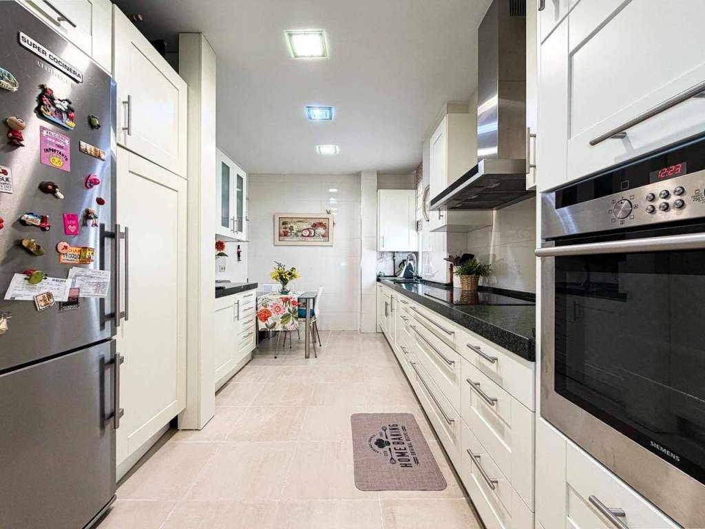 - Cocina: Independiente y de dimensiones muy generosas, totalmente equipada y con una excelente luz natural que la hace muy agradable.