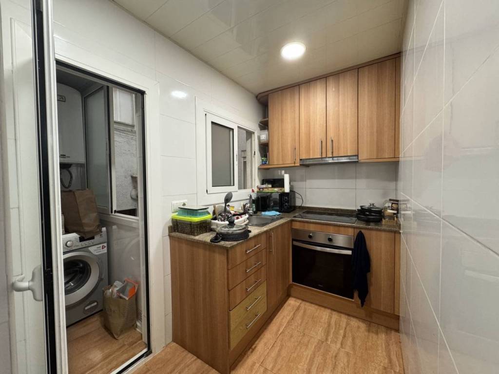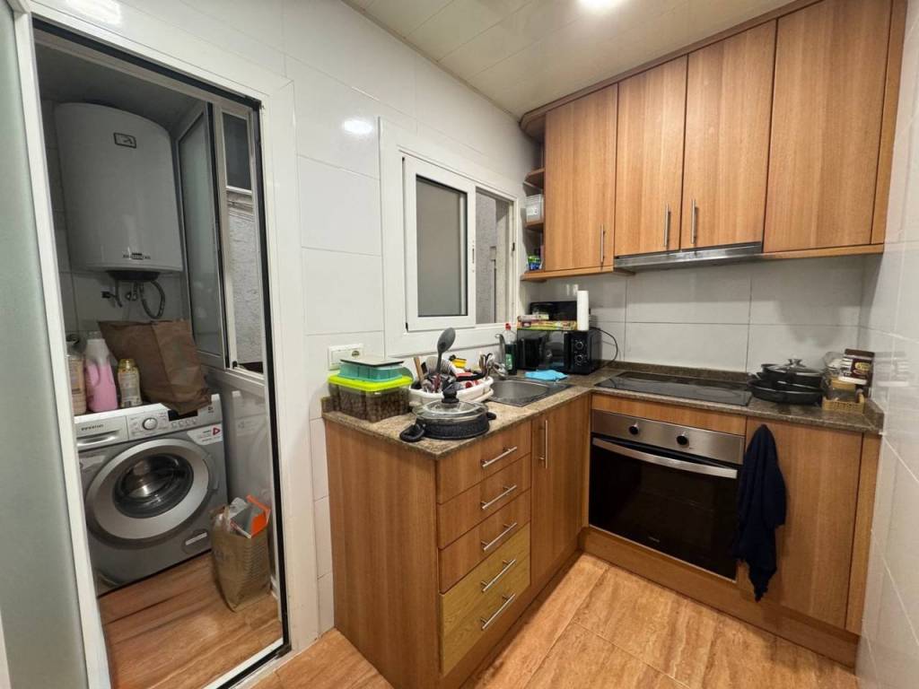 La zona de día cuenta con un amplio salón con grandes ventanales que aportan una agradable sensación de amplitud y luminosidad. La cocina, funcional y bien organizada, tiene acceso a una práctica galería con salida al patio interior, perfecta como zona de lavandería o espacio auxiliar.
