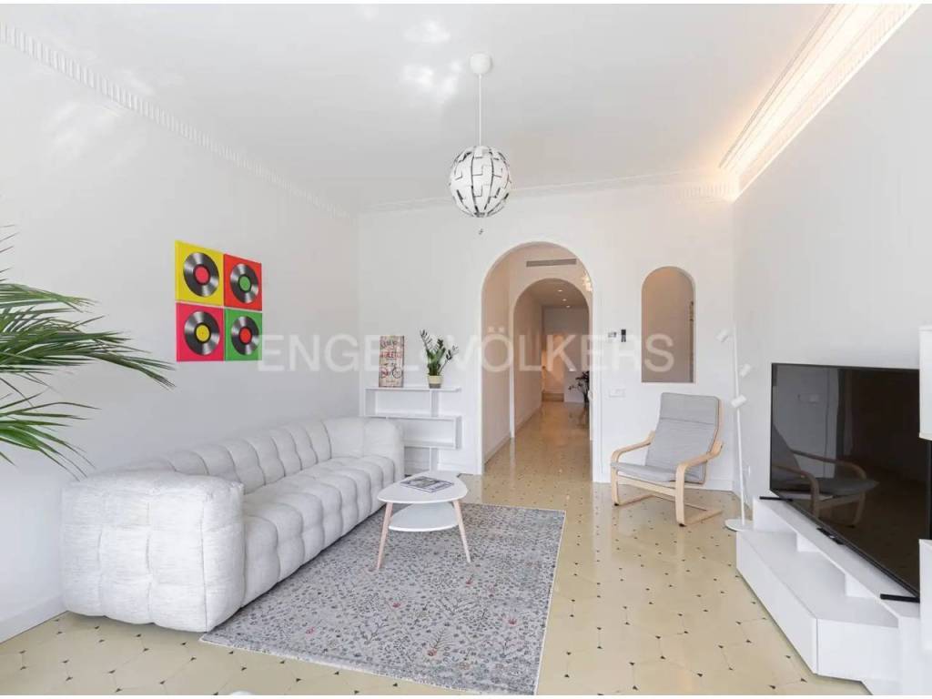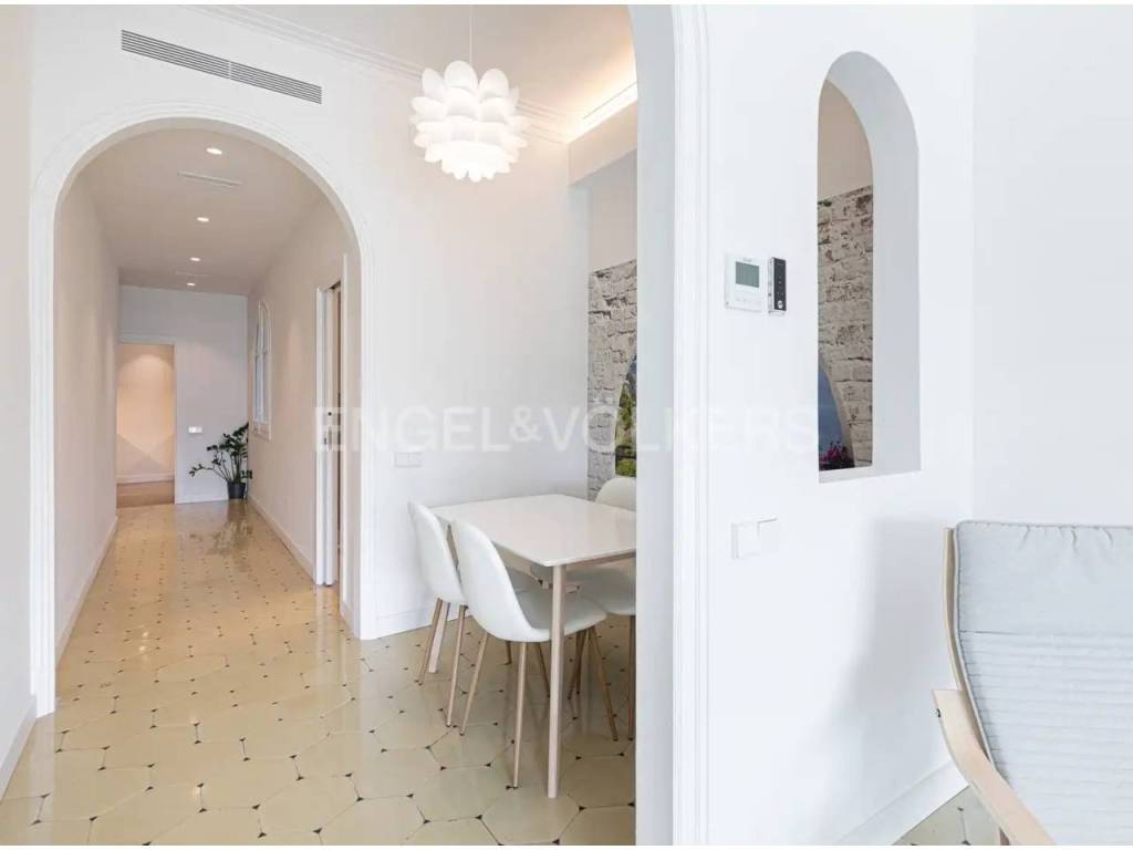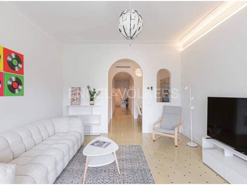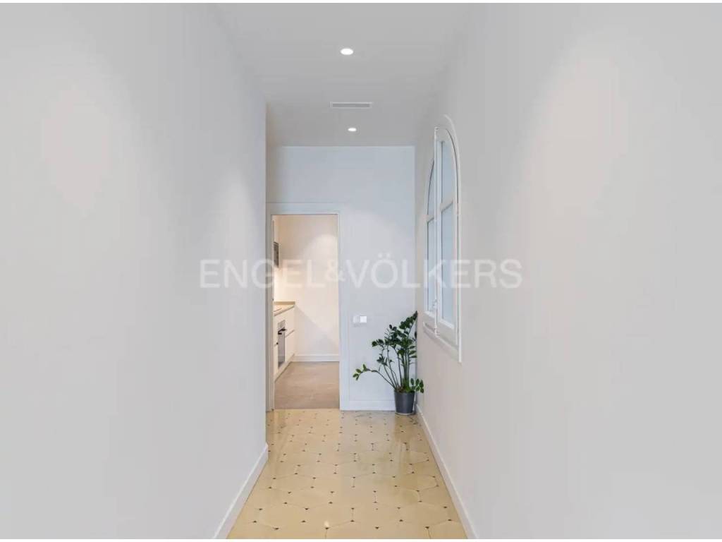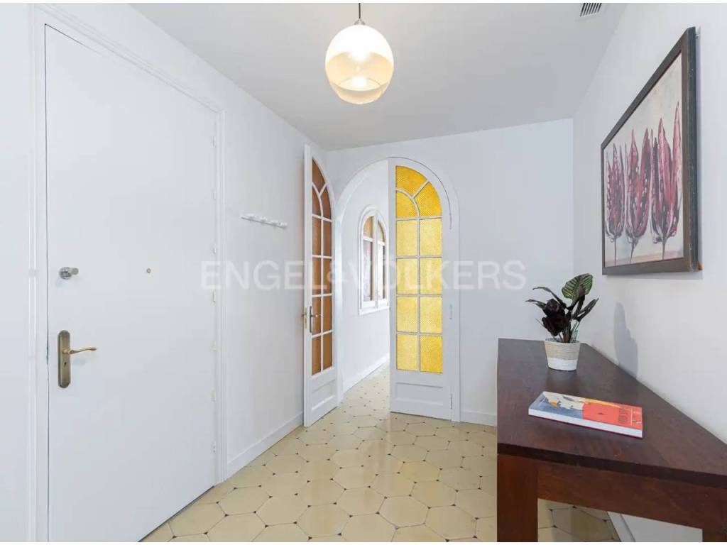 Disfruta de sol durante todo el día y una excelente ventilación en una vivienda señorial con techos altos, puertas grandes y un recibidor con amplio pasillo central. El piso está adaptado para personas con movilidad reducida.