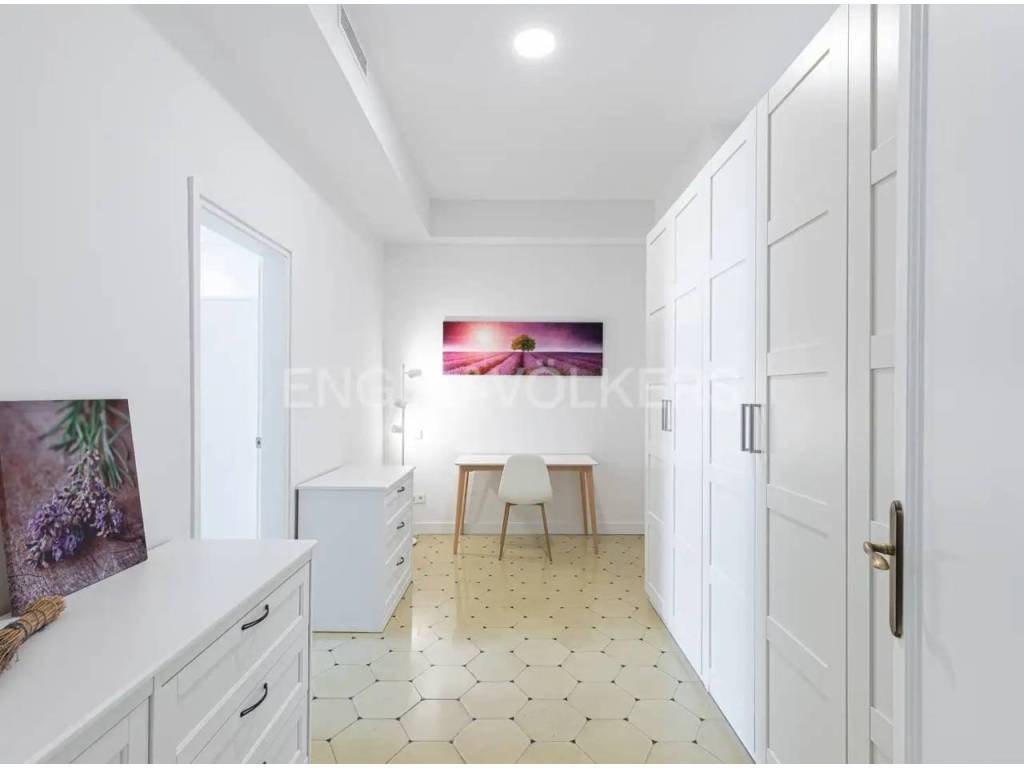 El piso se encuentra perfectamente aislado e insonorizado, con doble cristal y persianas automatizadas. La climatización funciona con un sistema aire acondicionado y bomba de calor por conductos de última tecnología. Los suelos han podido conservar las baldosas tradicionales una vez pulidas y restauradas.