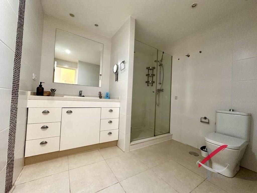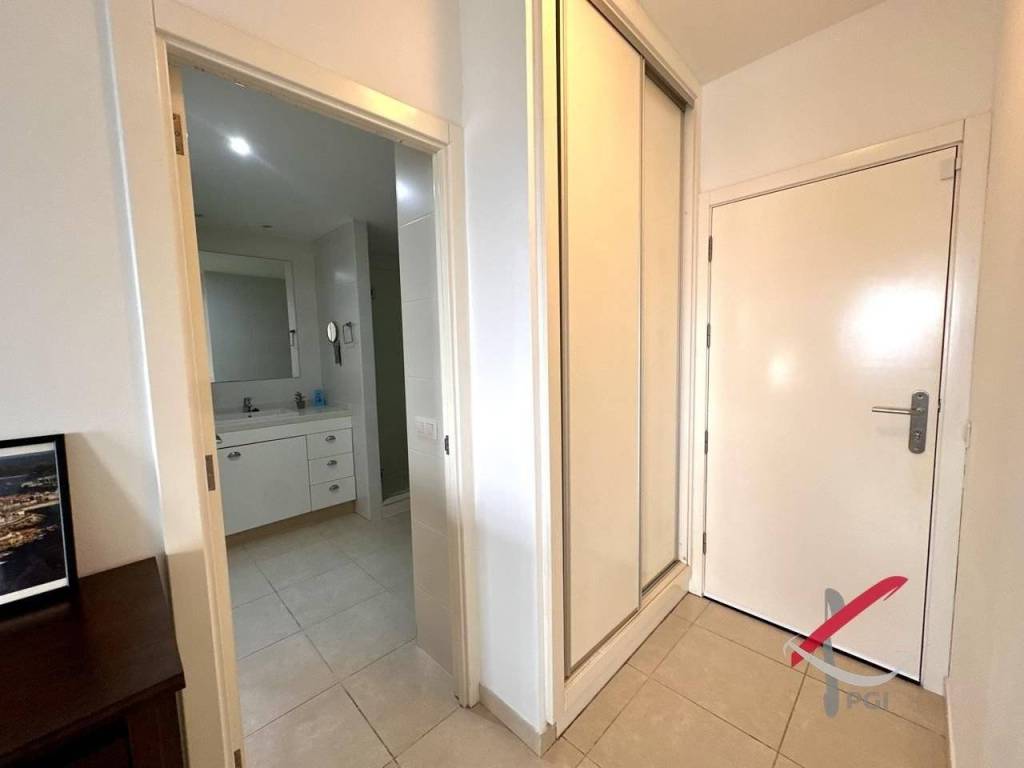 El dormitorio es muy amplio y cuenta con un gran armario empotrado. El baño destaca por su amplitud y su cómodo plato de ducha. La práctica cocina americana con encimera de granito ofrece funcionalidad y estilo, mientras que en la entrada dispones de un armario perfecto para lavadora, termo y almacenamiento adicional.