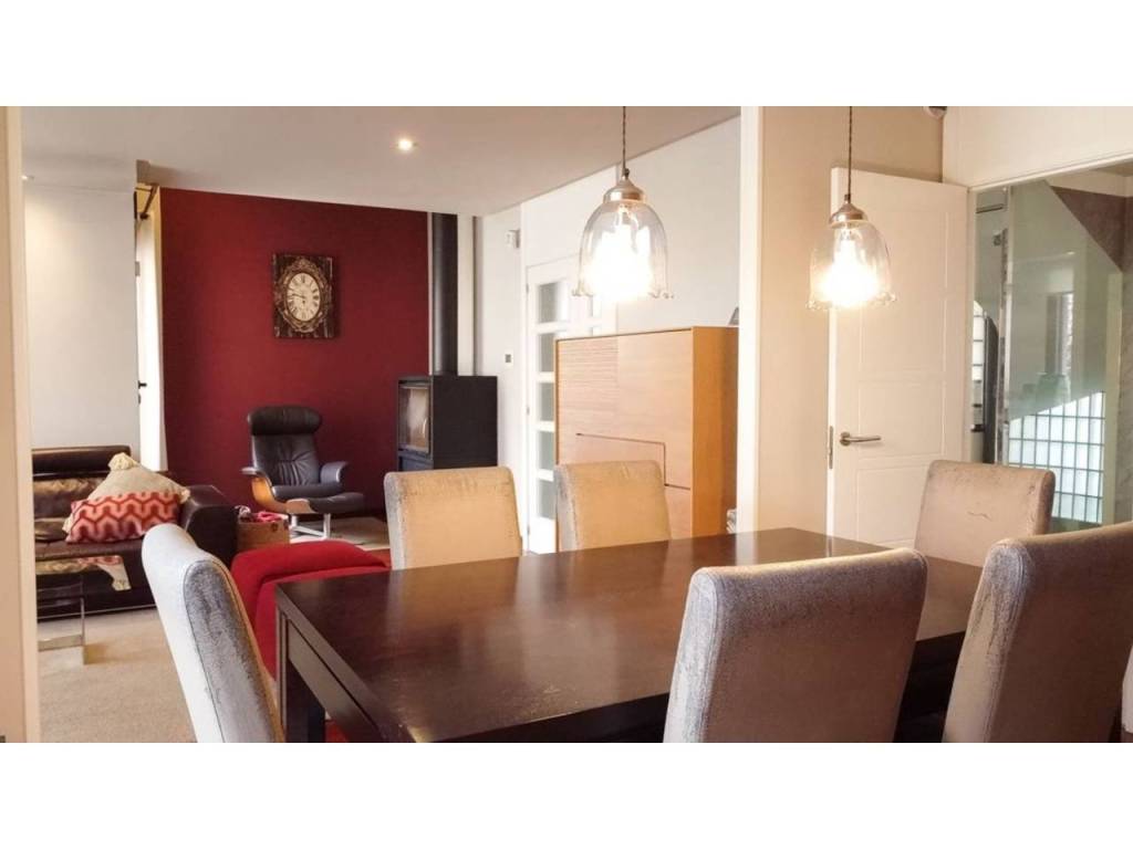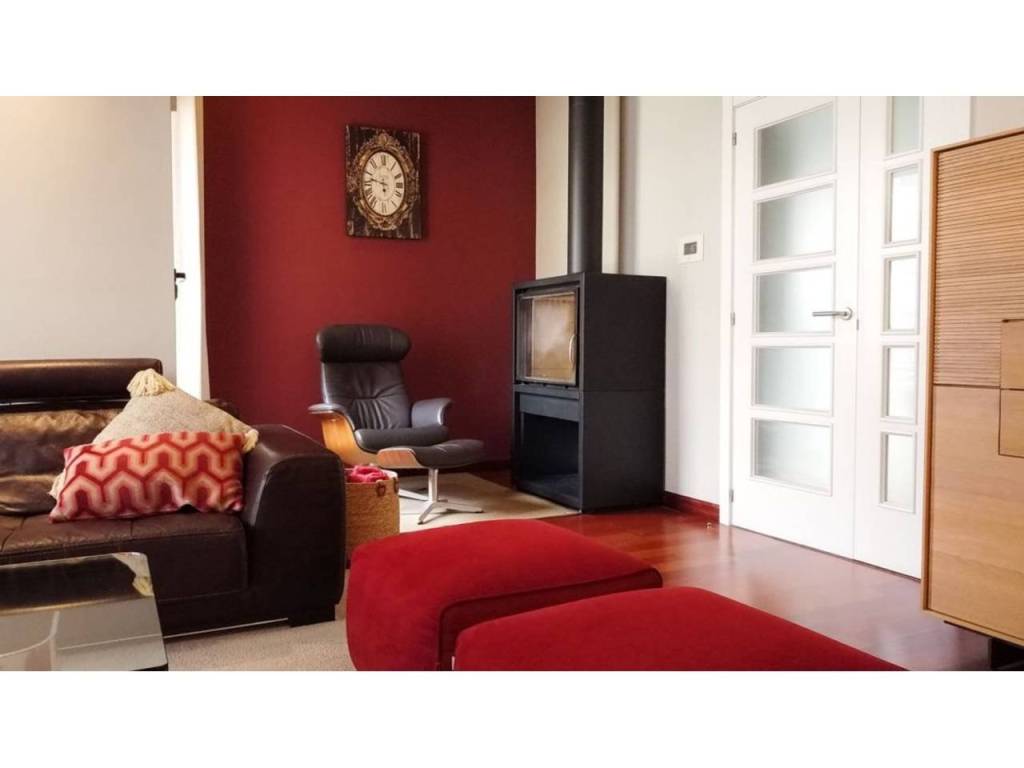 On the ground floor, a hall with a coat closet welcomes us, leading to a 36 m² usable living-dining room, a complete guest toilet, and a 19 m² usable kitchen with double access. The kitchen area is divided into a fully paneled and furnished kitchen with appliances, and a dining area. From the living-dining room, there is direct access to a 25 m² usable terrace with a porch and a 30 m² usable west-facing rear garden, thus providing two functional spaces for the best times of the year, perfect for outdoor gatherings. Likewise, from the rear garden, there is a door providing access to the communal areas of the residential complex. Finally, on this floor, there is a pellet fireplace, adding even more warmth to the living space.