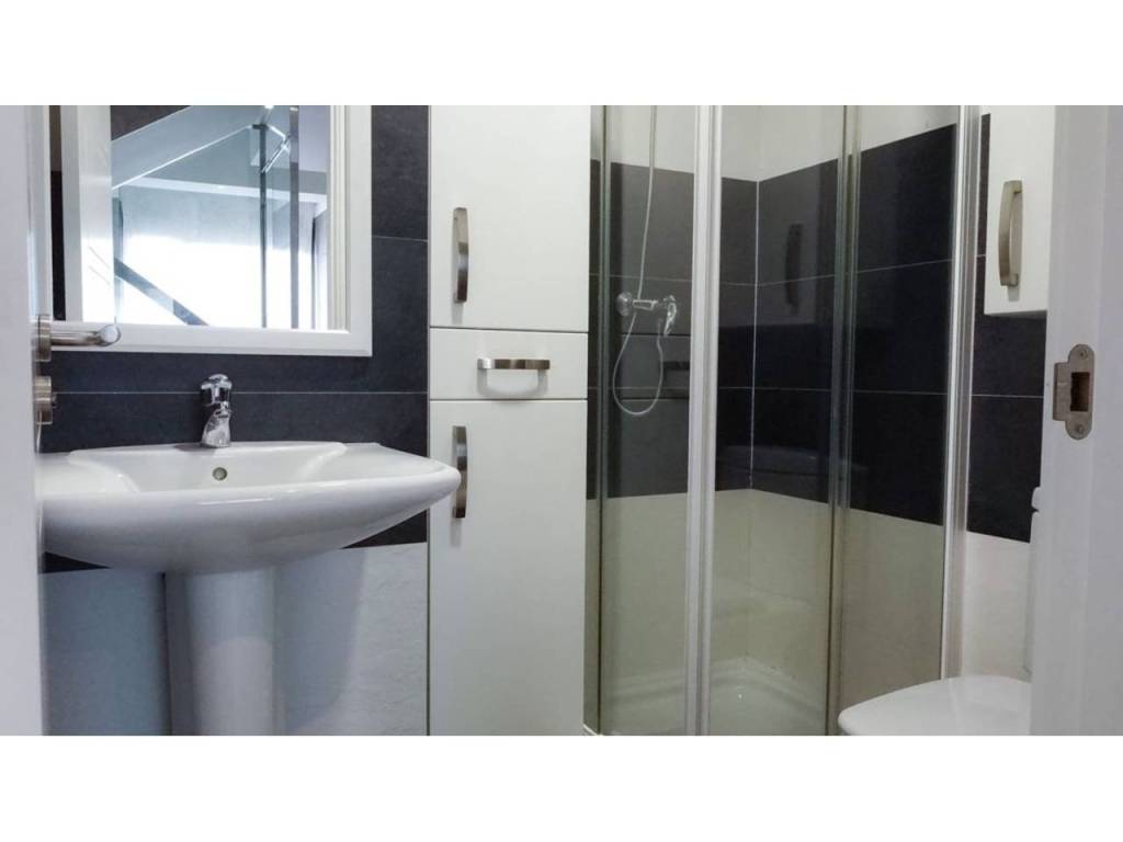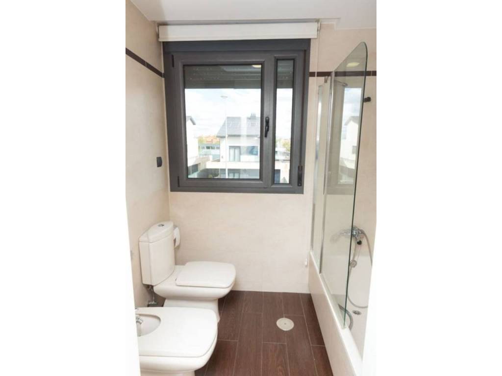 On the first floor, the private area features three spacious bedrooms, all equipped with fitted wardrobes. One of the bedrooms has access to an outdoor terrace. The master bedroom has a dressing area and an en-suite bathroom with a bathtub. Additionally, this floor has a second full bathroom with a shower serving the other bedrooms.