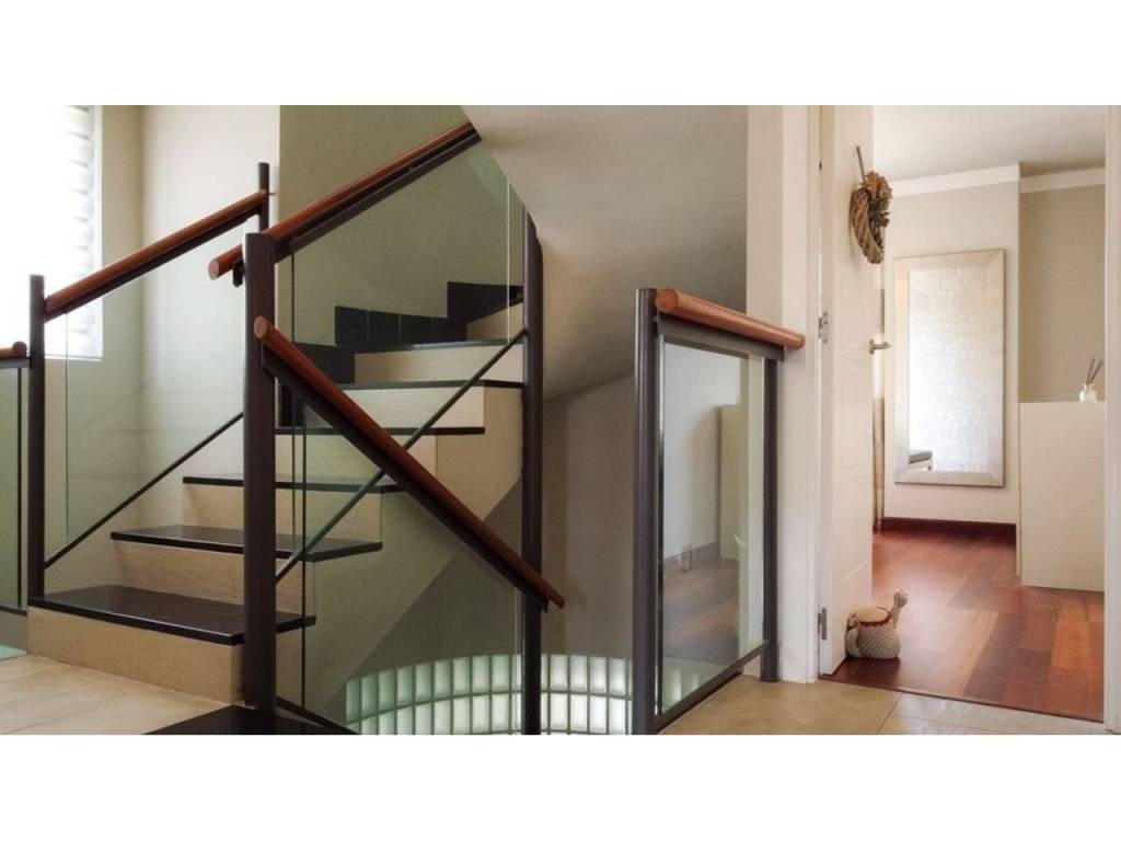 Access to the garage from the interior, on the basement floor, is through a glass door elegantly installed from the ground floor to differentiate the basement area. It has a space with an automatic opening door and remote control for access for 2 vehicles, a motorcycle, and bicycles. It also has a laundry area, pantry, and an installations room where a water softener is installed. This basement floor has connections in place to transform it into a wine cellar if desired, as it has water, electricity, and television connections.