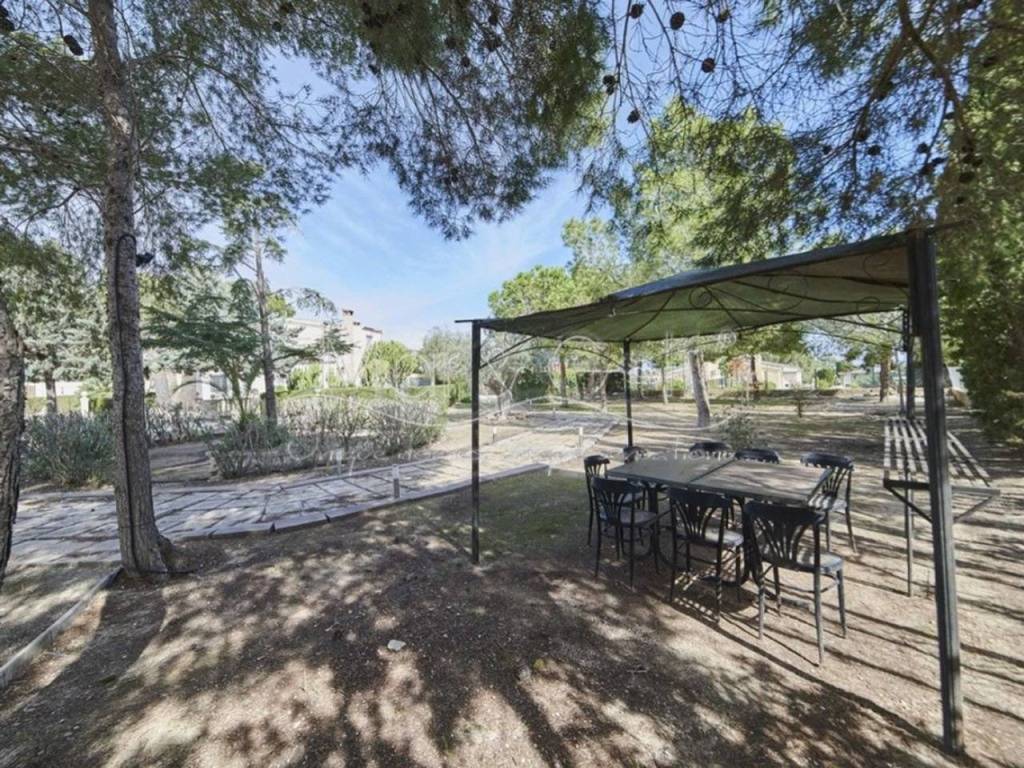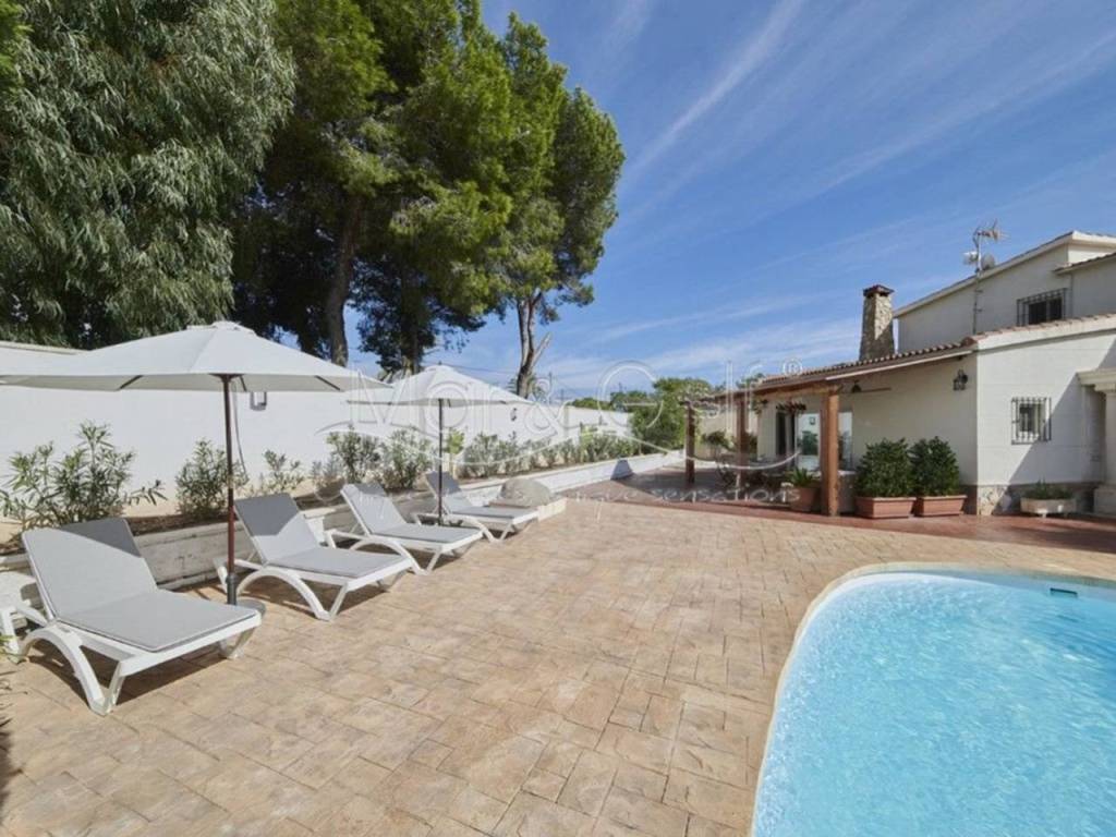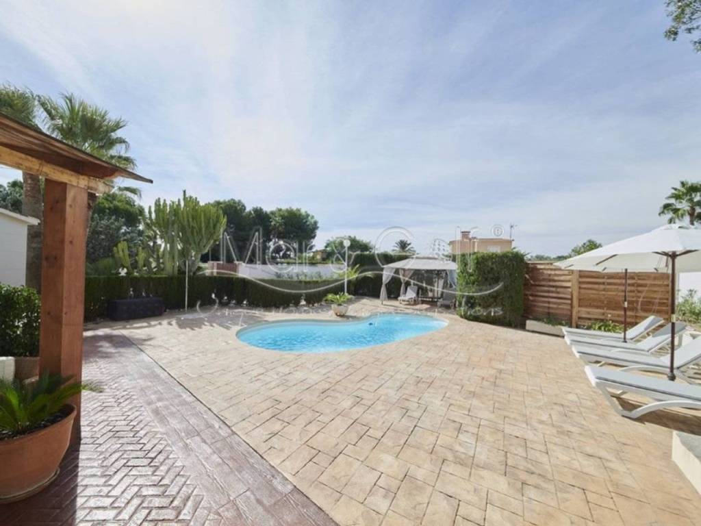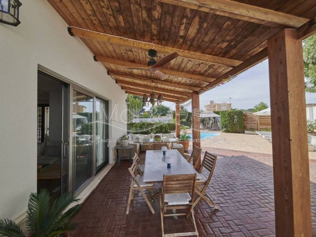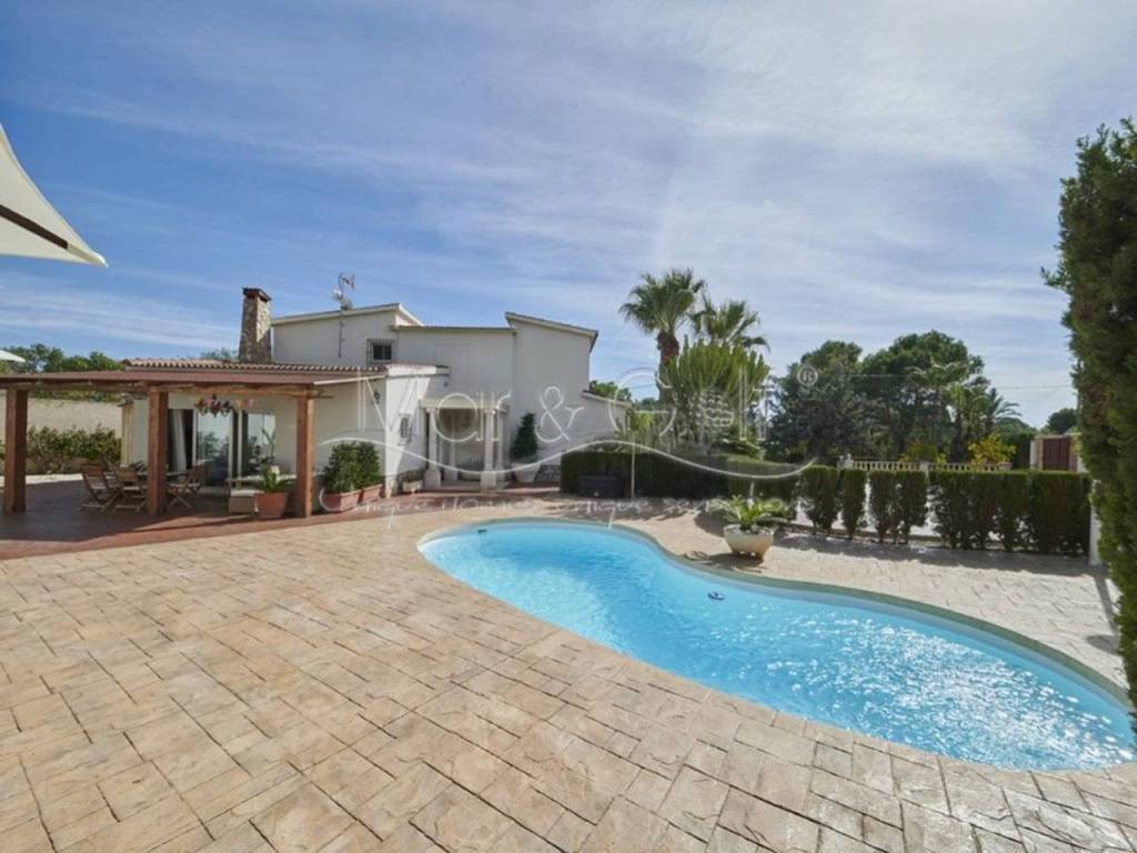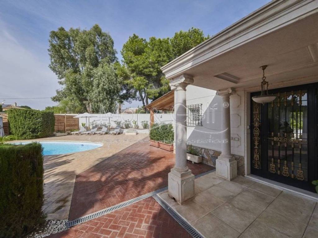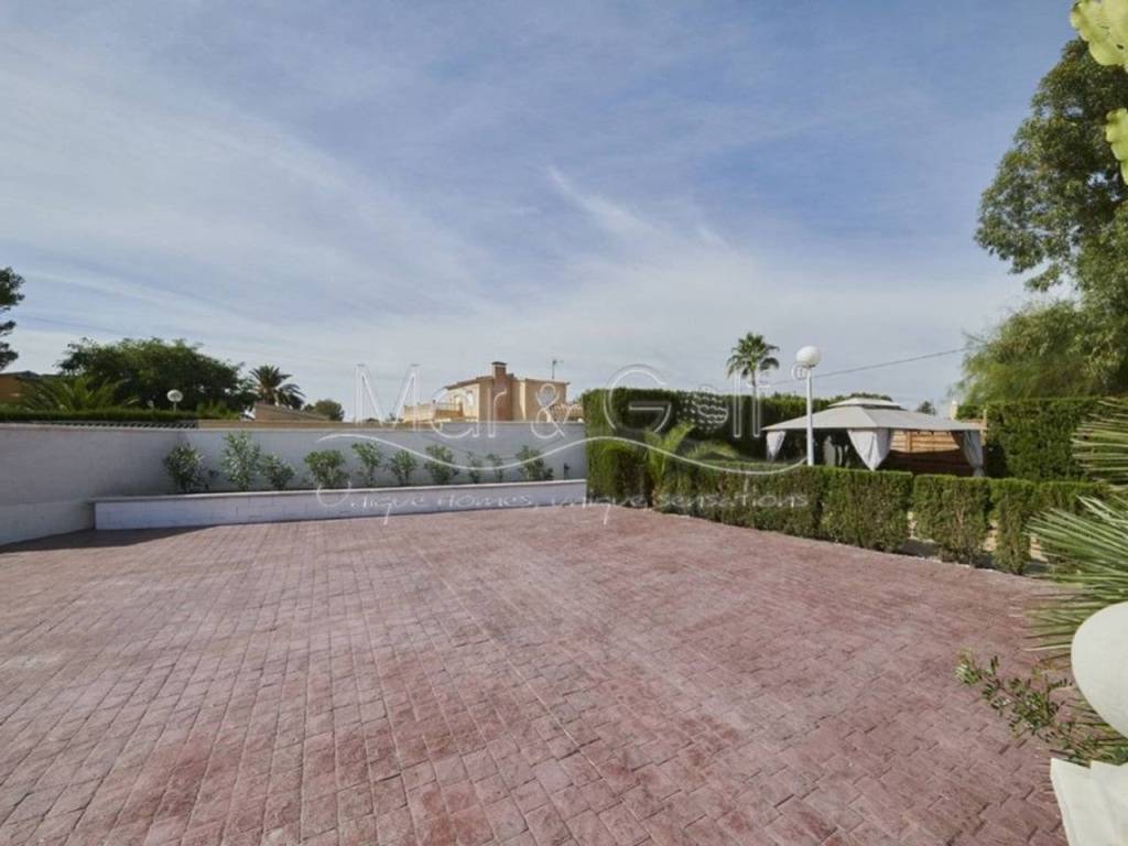 La propiedad se asienta sobre una amplia parcela ajardinada que invita a disfrutar del clima mediterráneo durante todo el año. En el exterior destaca una piscina privada rodeada de zonas verdes, área infantil integrada, pavimento de hormigón impreso, sistema de riego automático, iluminación exterior, puerta motorizada y completo sistema de seguridad. Dispone asimismo de garaje cubierto para dos vehículos, con posibilidad de habilitar un espacio adicional como vivienda de invitados.