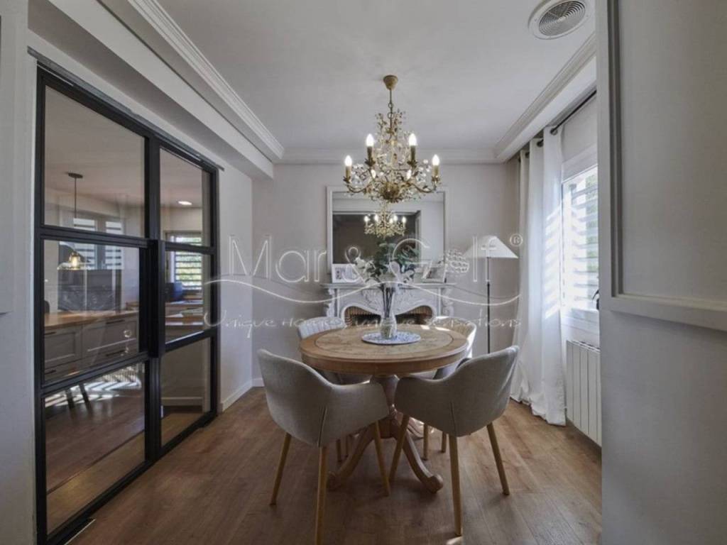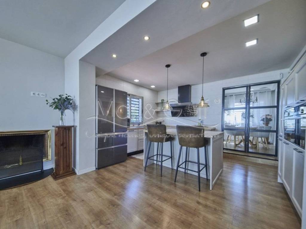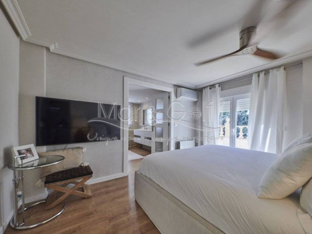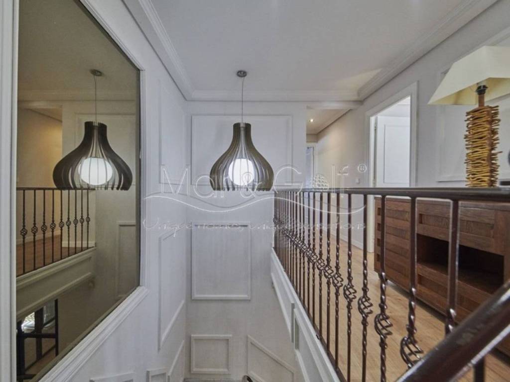En el interior, la vivienda ofrece espacios amplios y luminosos distribuidos en cuatro dormitorios. La suite principal cuenta con vestidor, baño completo y acceso a terraza privada. Además, dispone de un dormitorio adicional con chimenea y baño en suite, junto a otros dos dormitorios, uno de ellos con salida directa a terraza. La propiedad se completa con un total de cuatro baños completos y una moderna cocina totalmente equipada con electrodomésticos de alta gama.