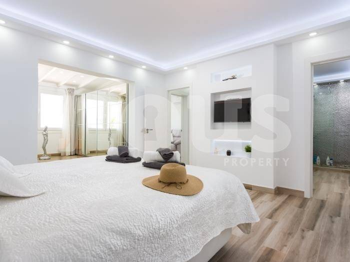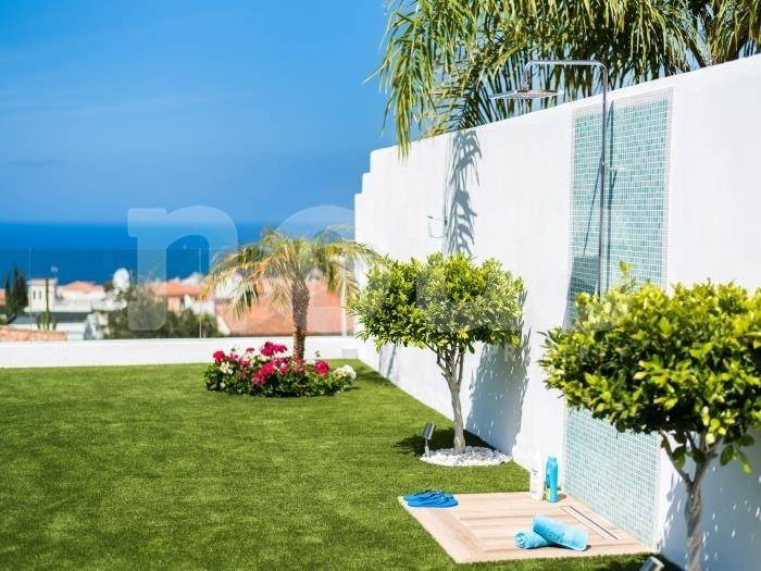 Exquisitely furnished, this bright property offers sea views from almost every air-conditioned room. Enjoy serenity in your private heated saltwater pool, outdoor hot shower, table tennis and barbecue area. The villa features a private gym, table football, and a relaxing double hot tub on the ground floor, along with two bedrooms and two private bathrooms.
