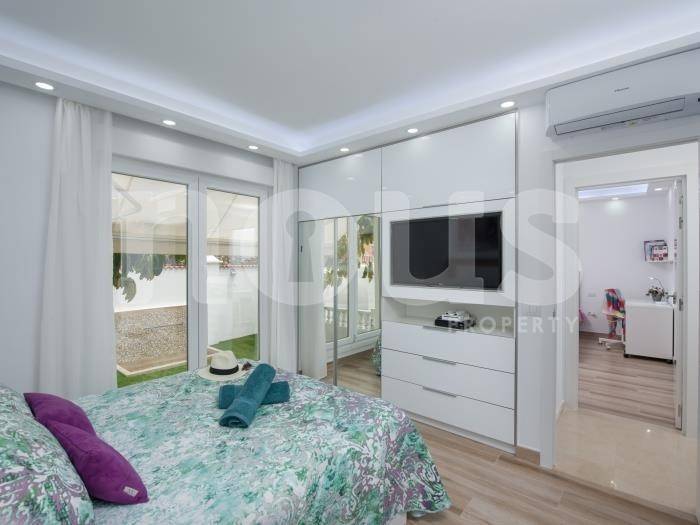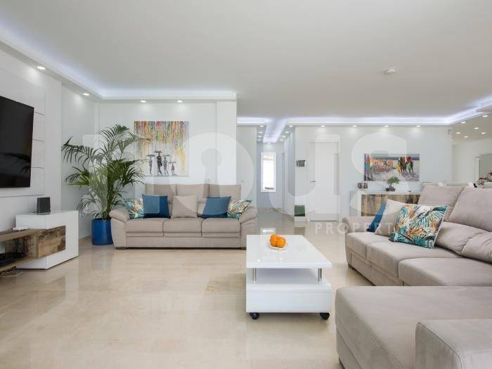With a three-level layout, the villa offers 6 bedrooms, each with its own private bathroom and satellite televisions. With capacity for up to 10 people, the property is accessed via an elegant staircase. On the ground floor, a spacious living room with a 65-inch TV, Netflix and PlayStation4 is combined with a fully equipped kitchen, including a dishwasher, microwave, coffee maker, blender and oven. The kitchen features a water filter, providing high-quality drinking water directly from the tap, promoting environmental sustainability.