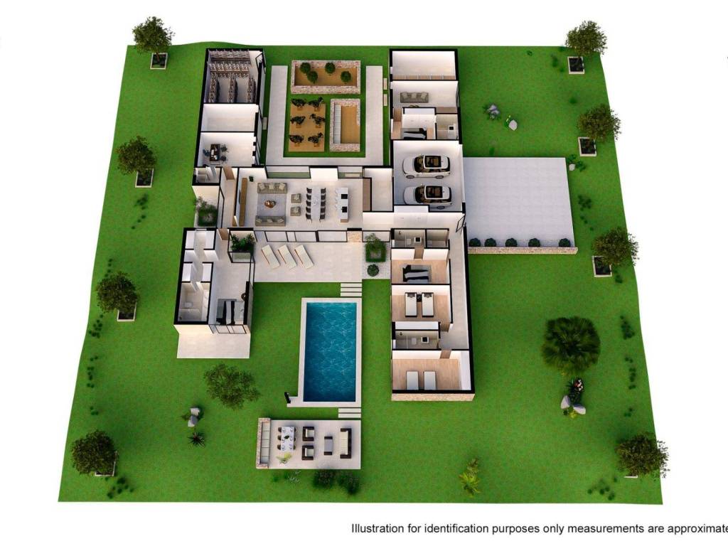 Different distribution models are offered, although it is also possible to make a totally personalized design. The standard models present a spacious house on one floor with 6 bedrooms, 5 bathrooms, open spaces full of life, where the "interior" and the "exterior" merge perfectly and natural light dominates.