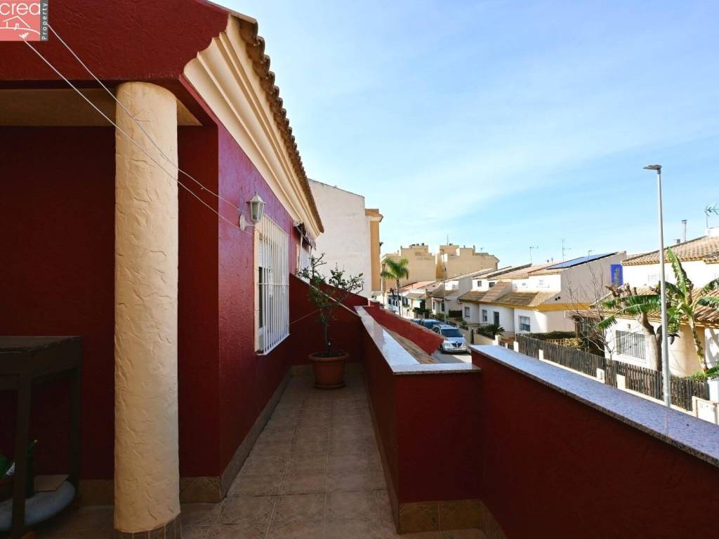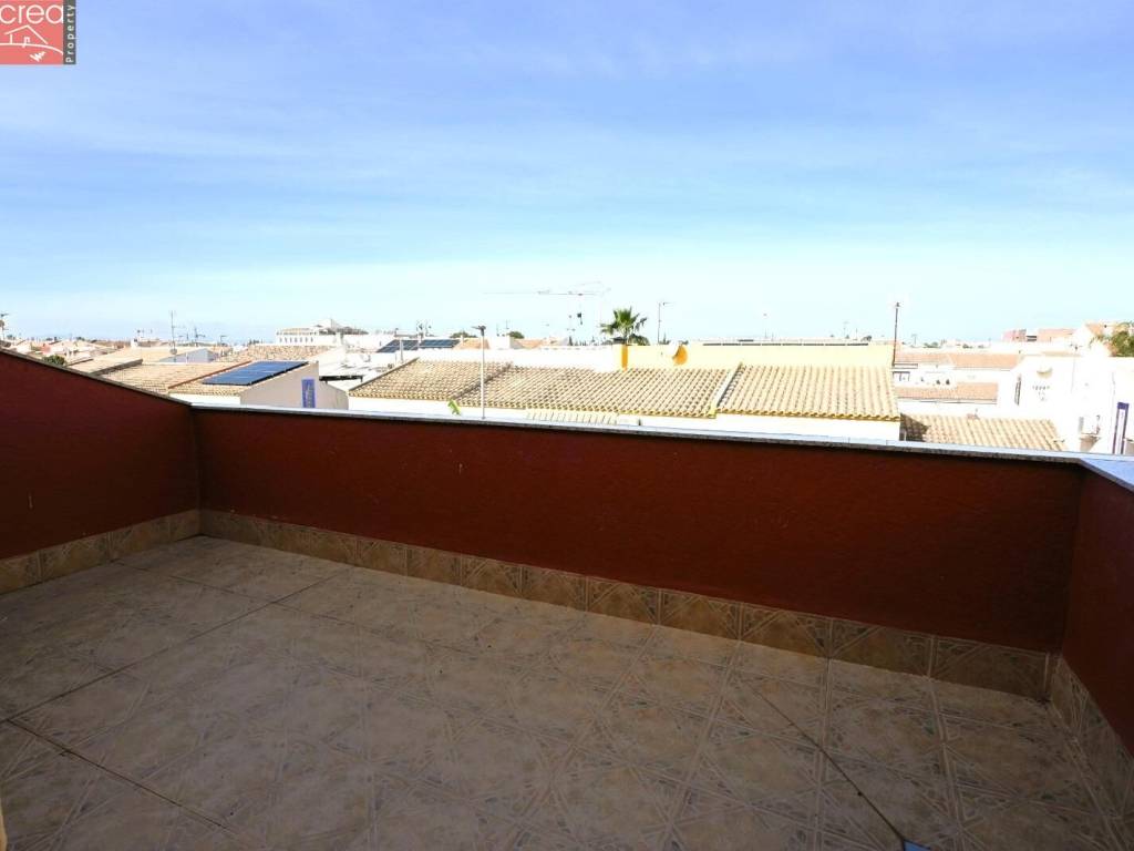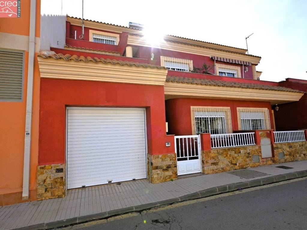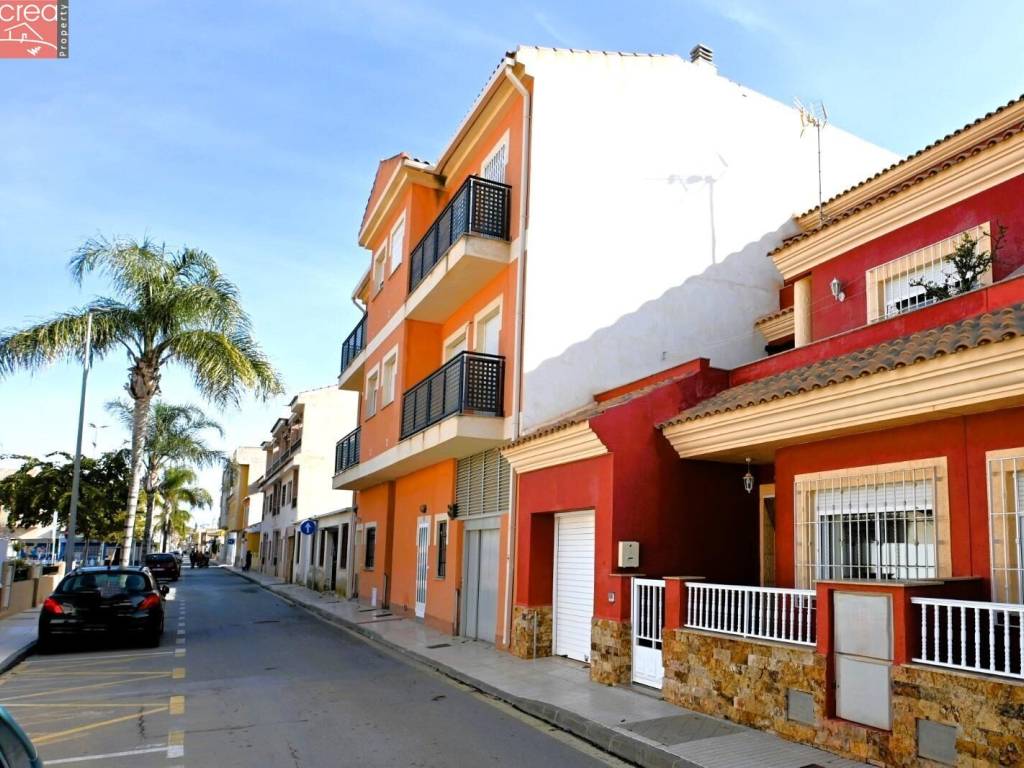 Presenting a fabulous 4 bed 3 bath townhouse with private garage in the center of Los Alcazares and only 300 meters from La Concha Beach. The property is immaculate, exceptionally well presented and literally ready to just move in! Ground floor consists ofSpacious lounge / dinerAccess to private garageBathroomDouble bedroom, with integrated wardrobes, currently being used as an officeStairwell and Fitted Kitchen leading to the courtyard style patio. First floor consists of 2 double bedrooms with integrated wardrobesFamily bathroom and aMaster bedroom with cuadruple integrated wardrobe and french doors leading out to a large patioSecond floor leads to a games room with a bar, a 3rd bathroom and leads out to a further patio.Located in the heart of Los Alcazares, bars, restaurants, supermarkets, transport and health services are all on your doorstep and better still, the beach is no more than a 5 minute walk. This property is a perfect family home and MUST be viewed to appreciate all it has to offer.