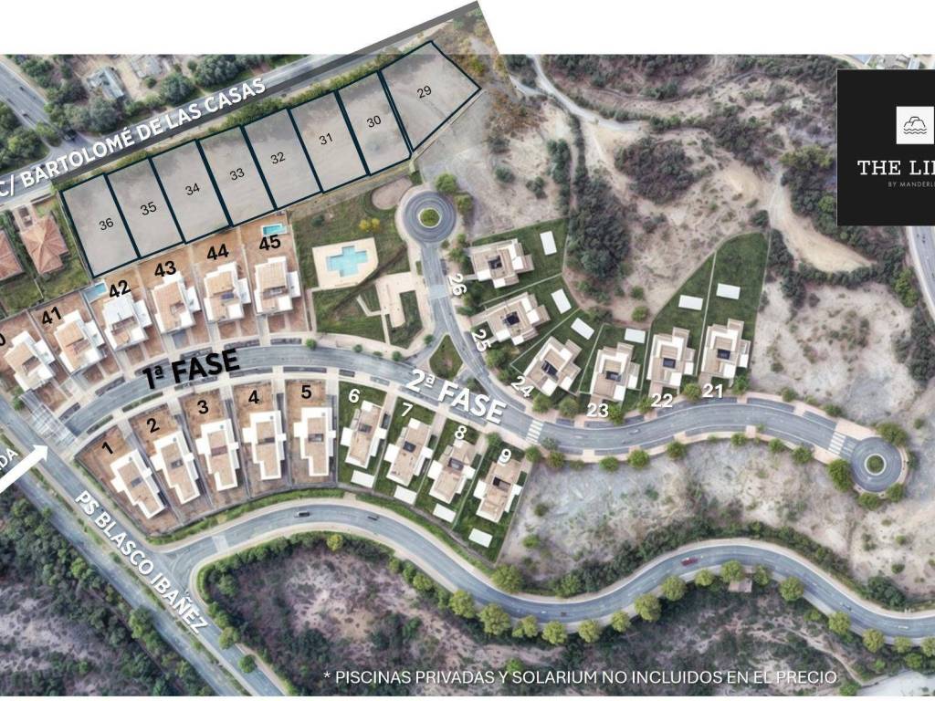 Urbanización cerrada con amplias calles ajardinadas, grandes parcelas independientes, zonas comunitarias y viviendas que cumplen los requisitos más exigentes en sostenibilidad y aislamiento.
