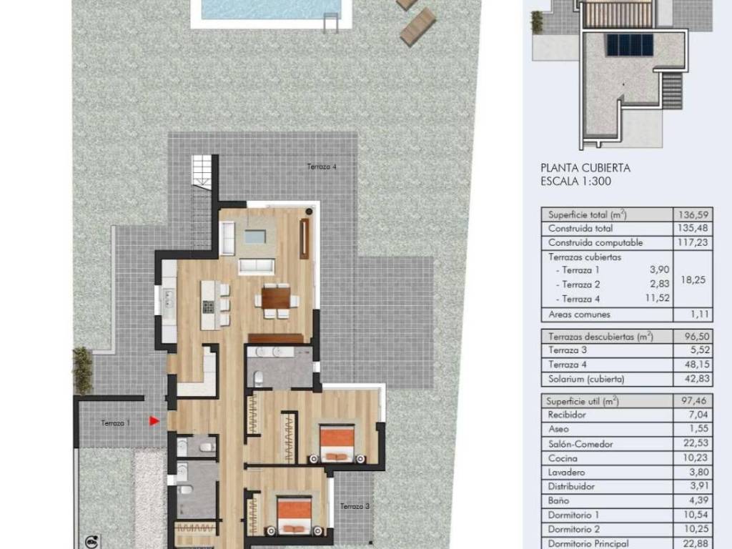 - BIRDIE con 136 m2 construidos. 3 dormitorios, 2 baños, jardín trasero y lateral.