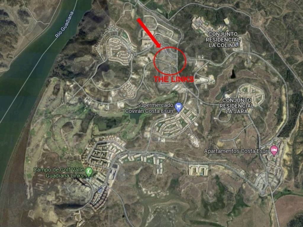 Los chalets se encuentran a 5 minutos en coche de la casa club del campo de Golf de Costa Esuri. A 5km del centro de Ayamonte y 3km del Puente de Portugal. Una urbanización joven y en desarrollo, con amplias calles muy bien cuidadas y con servicios de mantenimiento, recogida de basura, autobuses y taxis todo el año.