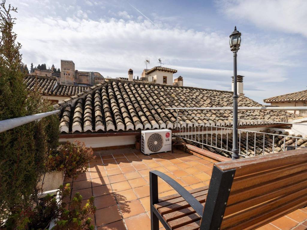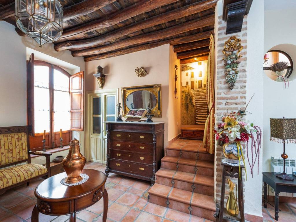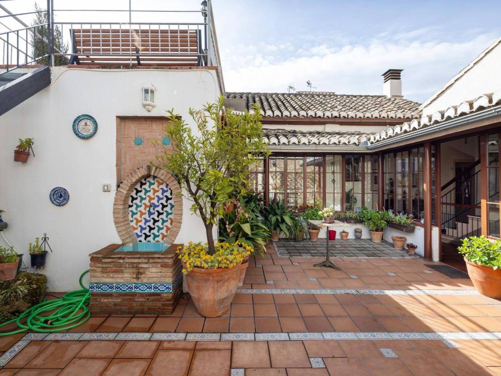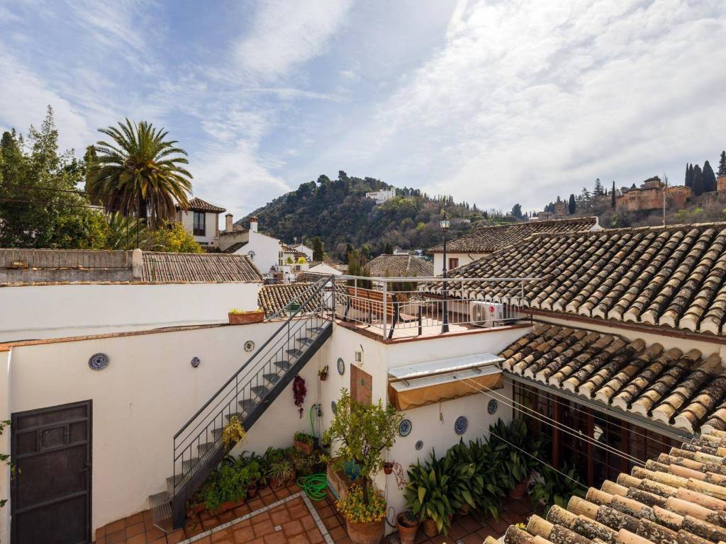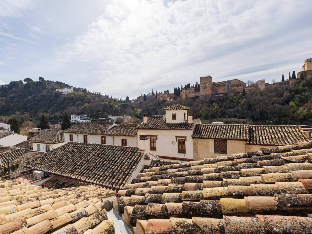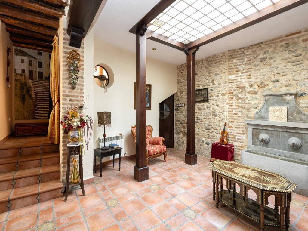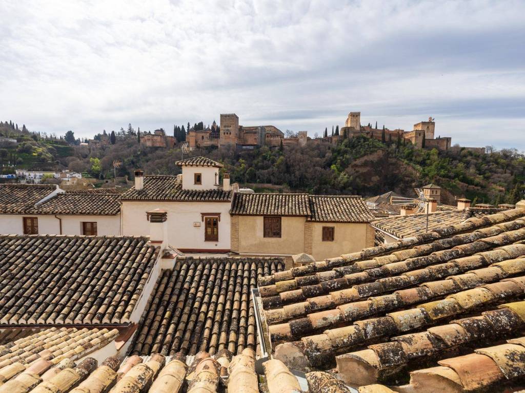 We present this magnificent house located in the Albaicín Bajo, one of the most emblematic areas of Granada. With a 220 m2 plot and 340 m2 built area, this property stands out for its privileged location and spectacular layout. Unique location with spectacular views. Located on the southern slope of the hill that gives its name to the neighborhood, this house faces La Sabica Hill, offering panoramic views of the Alhambra from two of the three levels of the building. The proximity to iconic sites such as Sacromonte, Paseo del Avellano, Paseo de los Tristes, and the lower edge of the Alhambra make it a privileged and unparalleled location. Layout and key featuresLevel 0 (at ground level with San Juan de los Reyes Street)Spacious entrance hall with natural overhead lighting.Marble replica of the Avellano pillar.Bedroom for a couple with en-suite bathroom.Garage with direct access to the main road.Old cistern connected to the Axaris irrigation canal, currently renovated.Cave dug into the hillside with a wine cellar, bar with wine rack and counter, and a music listening room, ideal for enjoying special moments.Level 1Two interior patios providing light and fresh air.Terrace with a viewing point and stunning views of the Alhambra and the Generalife.Glass-enclosed gallery surrounding the main patio.Spacious two-story living room with fireplace and large windows and a balcony overlooking the main road.Spacious attic kitchen with a toilet and laundry room.Two bedrooms with built-in wardrobes, one of them with an en-suite bathroom.Level 2Two additional bedrooms with bathroom and built-in wardrobes.Large windows with wide views of the Alhambra and a balcony offering views of Cerro del Sol and the Generalife.Level 3Small viewpoint at the highest part of the house, with full and panoramic views of the entire Nasrid monumental complex and the Albaicín. A property full of history and characterThis house, located in the heart of one of the most historic and picturesque neighborhoods of Granada, combines the charm of traditional architecture with the comforts of modern life.A unique opportunity to live or invest in the Albaicín, surrounded by history, culture and unparalleled views! Don't hesitate to contact us for more information or to schedule your visit! You can see more homes by visiting our website: velezcasas.com. The listed RRP does not include taxes or title deed fees. Agency fees are not included. **The surface areas indicated on this page are descriptive and approximate. Prices are subject to change without prior notice.