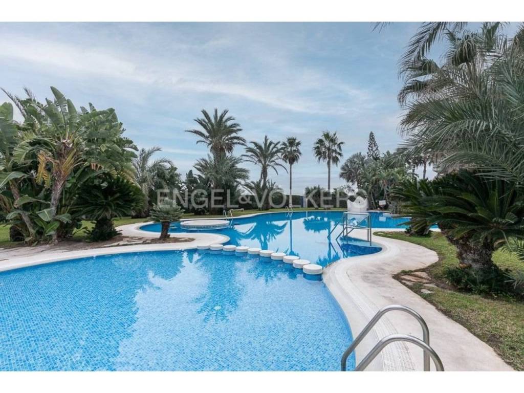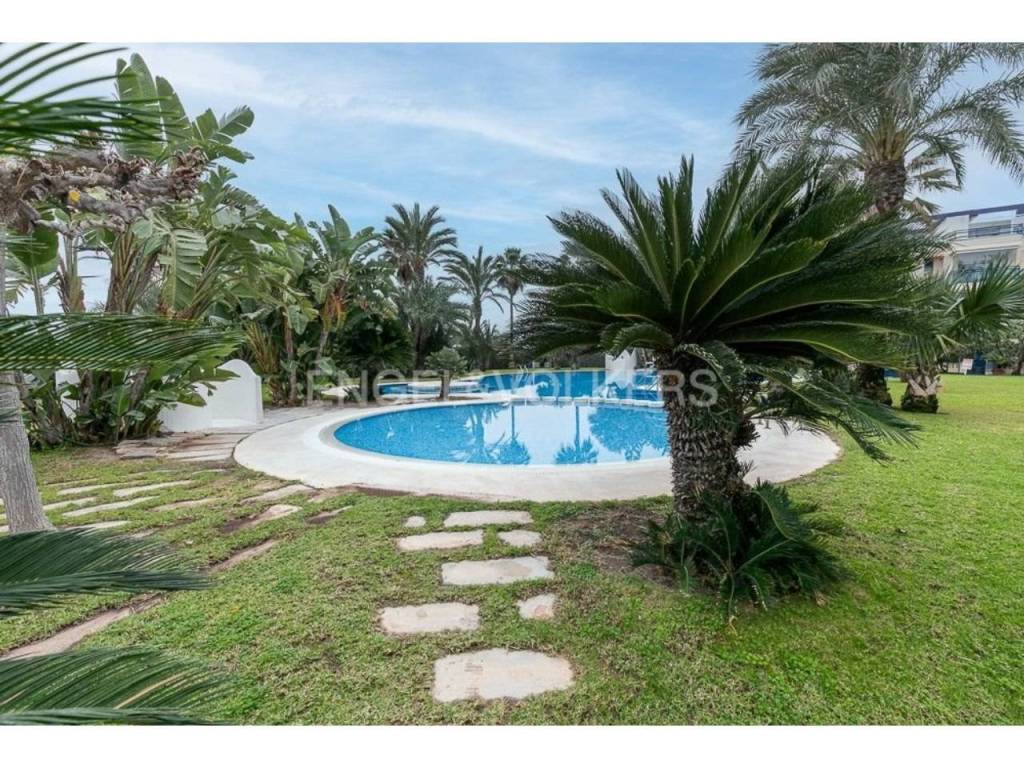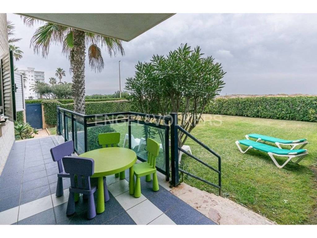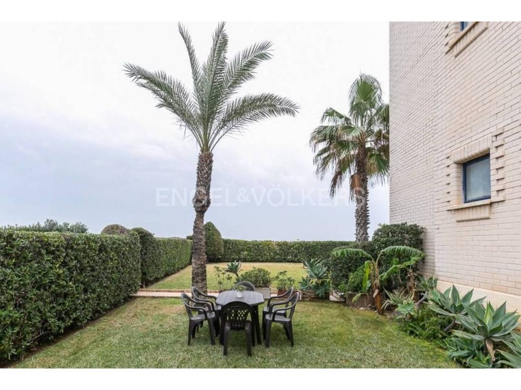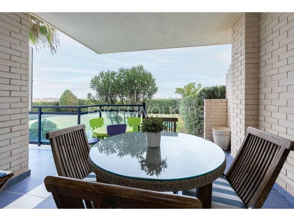 Apartamento fantástico, con acceso individual desde el exterior de la finca, cuenta con un amplio terreno de uso particular, cuenta de salón comedor amplio con salida a la terraza y jardín, con vistas al mar, tiene tres habitaciones, dos baños completos, acceso directo a la playa desde zonas comunes donde pueden disfrutar de juegos para niños, con un lindo parque y zona para relajarse junto a la piscina.