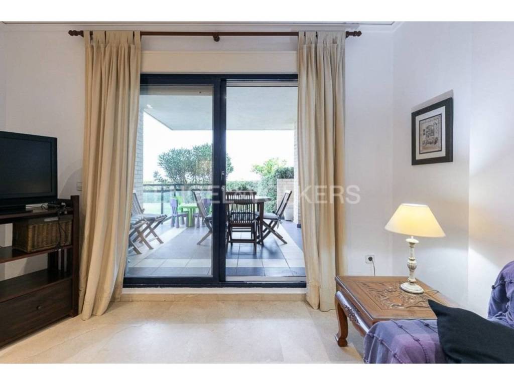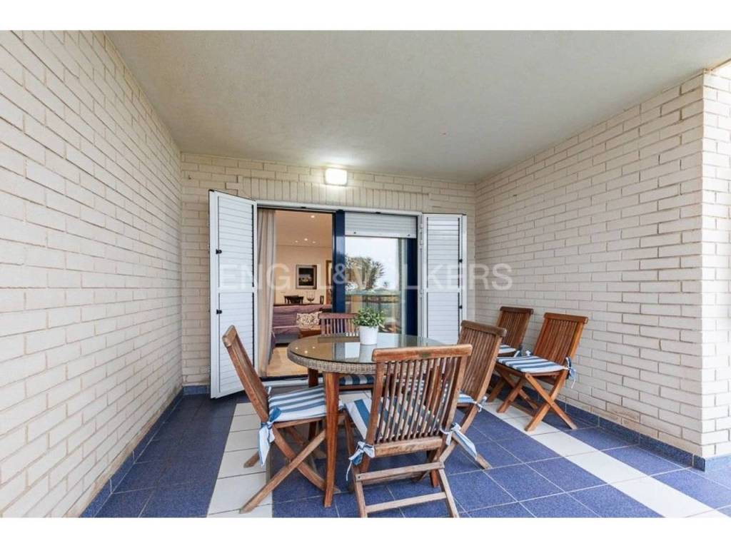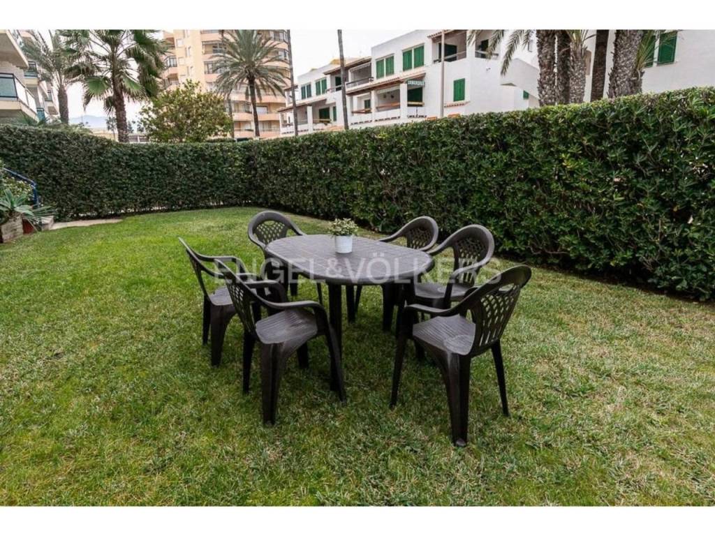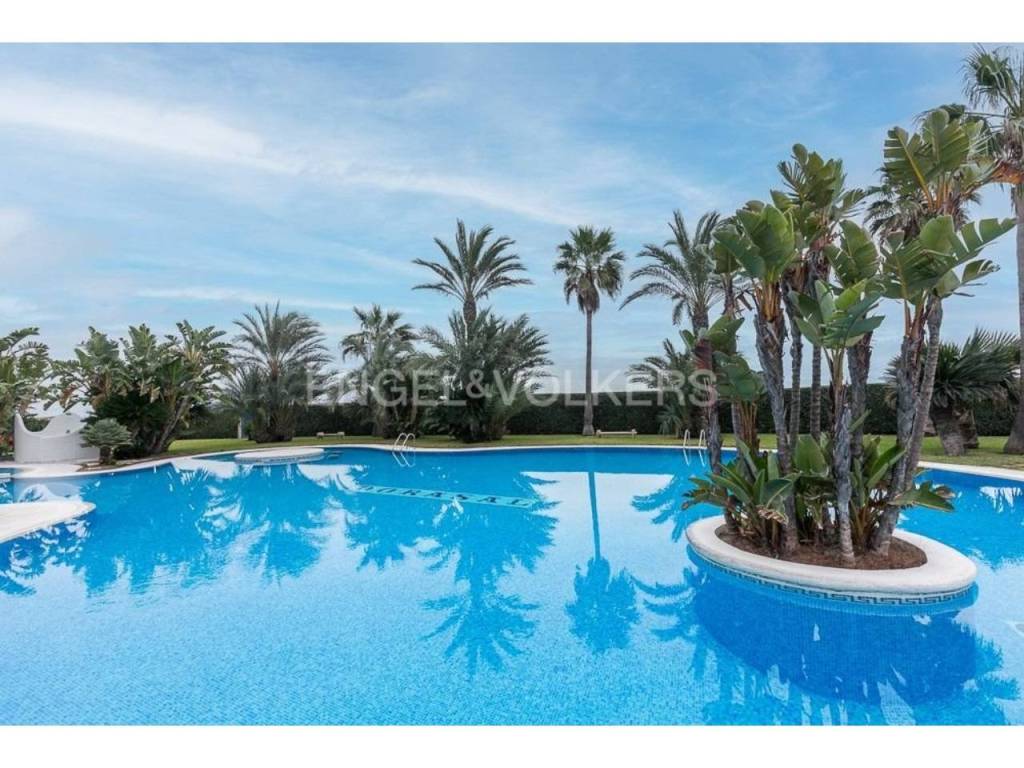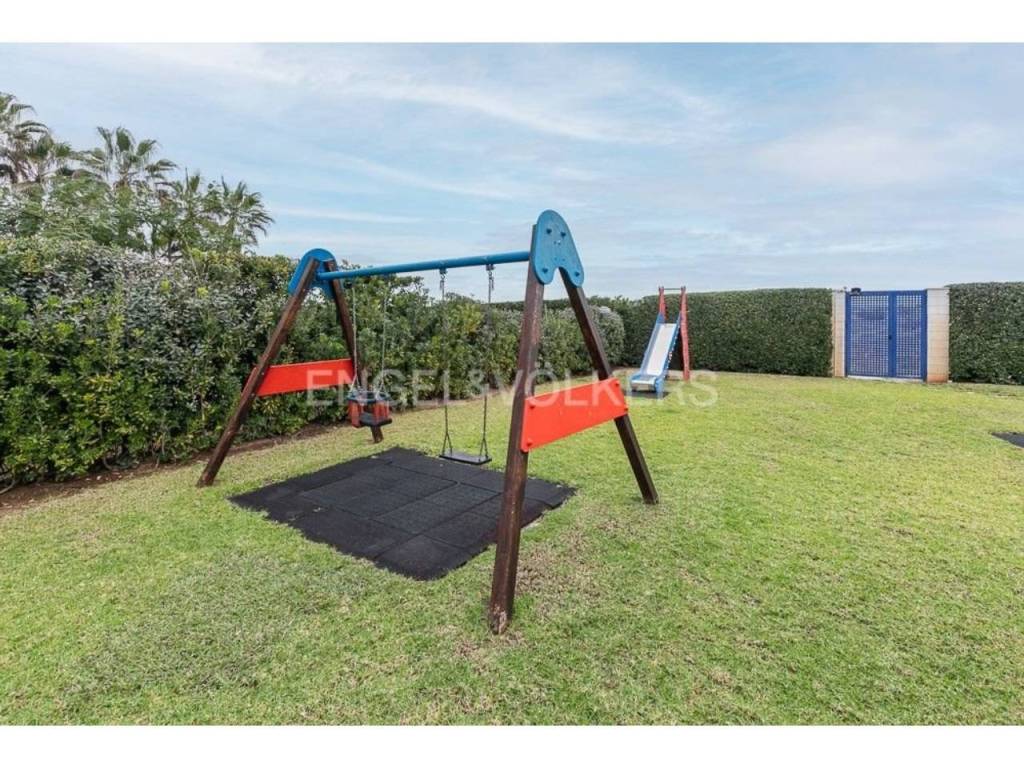 Apartamento fantástico, con acceso individual desde el exterior de la finca, cuenta con un amplio terreno de uso particular, cuenta de salón comedor amplio con salida a la terraza y jardín, con vistas al mar, tiene tres habitaciones, dos baños completos, acceso directo a la playa desde zonas comunes donde pueden disfrutar de juegos para niños, con un lindo parque y zona para relajarse junto a la piscina.
