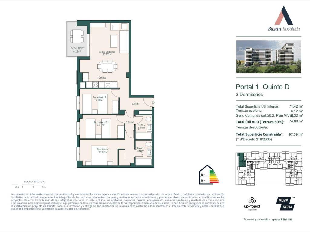 Tu nuevo hogar te espera en BAZÁN ROSALEDA!BAZÁN ROSALEDA, creado por UP PROJECT y ALBA-REIM. Esta promoción de viviendas de protección oficial (VPO) es un edificio singular de doce plantas, con 200 viviendas de 1, 2, 3 y 4 dormitorios, todas diseñadas pensando en tu confort y estilo de vida.Vistas de ensueño, comodidad sin igualDespierta cada mañana con las impresionantes vistas a Sierra Nevada y la Vega de Granada desde la terraza de tu hogar. Disfruta de una urbanización cerrada con amplias zonas comunes, que incluyen espacios ajardinados, áreas de juegos infantiles y una espectacular piscina estilo Infinity pool en la cubierta de la décima planta.Diseño pensado para tiCada vivienda está cuidadosamente diseñada para ofrecerte una distribución optimizada, materiales de calidad y acabados modernos. Además, contarás con plaza de garaje y trastero, porque sabemos que la comodidad es clave.Un barrio único para una vida únicaBAZÁN ROSALEDA está ubicado en el corazón del nuevo Barrio de Las Alquerías, este entorno combina la tranquilidad de los espacios abiertos y las zonas verdes, como el espectacular parque de Las Alquerías de 110.000 m, con la cercanía al centro de la ciudad.Servicios a tu alcanceEn tu nuevo barrio encontrarás todo lo que necesitas: supermercados, farmacias, centros deportivos y educativos, además de una excelente conexión a la autovía GR-30. Si prefieres el transporte público, a pocos metros tendrás varias paradas de autobús para moverte con total comodidad.Te imaginas vivir aquí?Esta es tu oportunidad de disfrutar de una calidad de vida incomparable en un entorno privilegiado.Ven y sorpréndete con BAZÁN ROSALEDA.