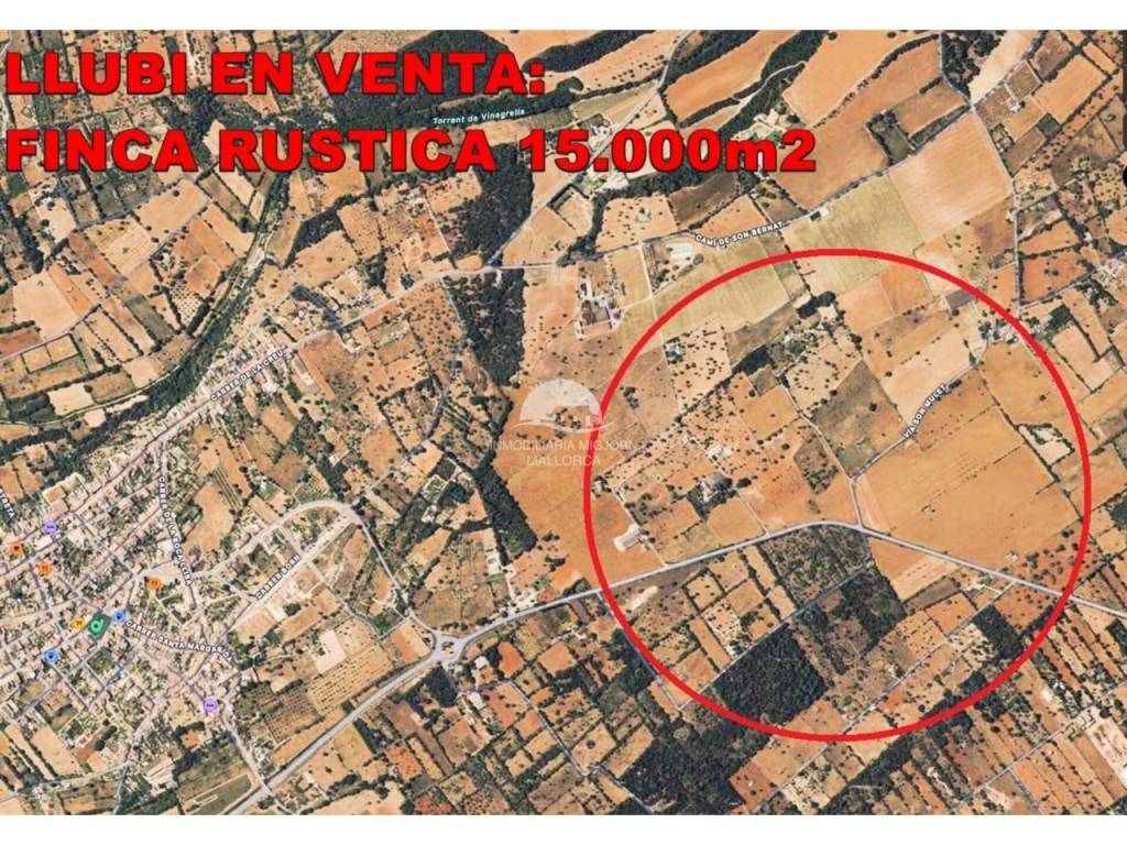 Beautiful Finca-plot with a total area of 15.000m2, completely fenced with Mallorcan dry stone walls, for sale approx. 1.5km east of Llubi. The property in a dream setting is ideal for building a detached country house with pool.