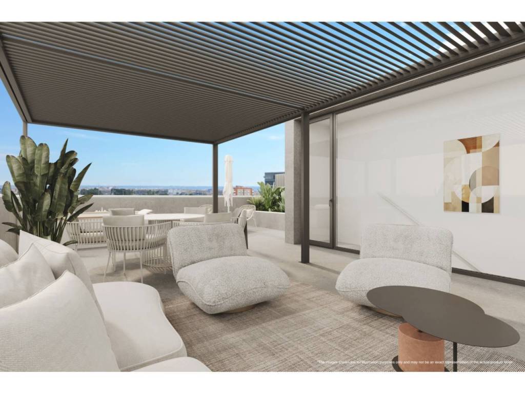 Apartments with one, two, and three bedrooms with spacious terraces, ground floors with garden, and penthouses.