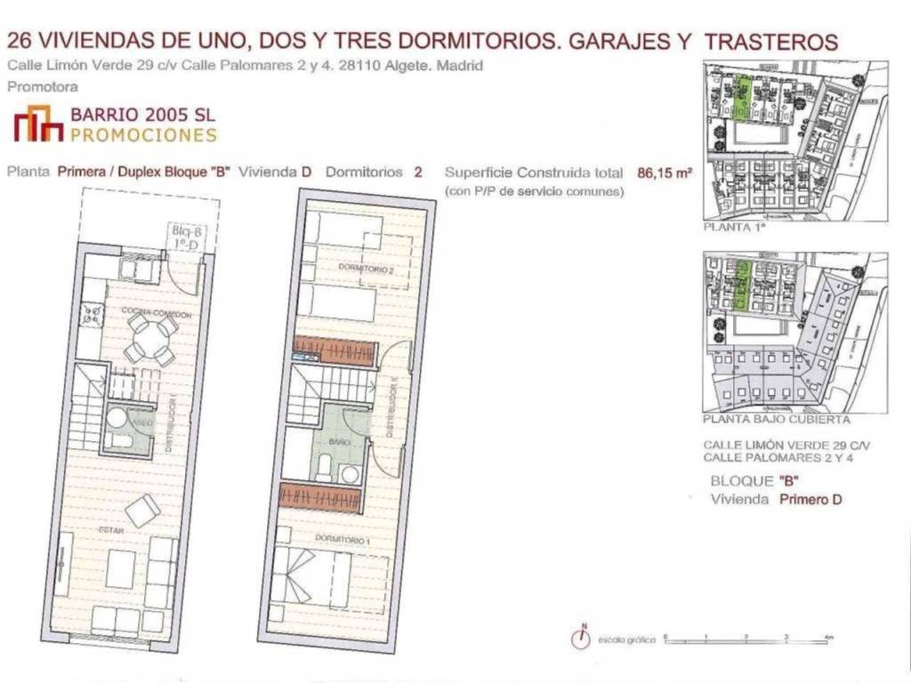 Floor 1st, duplex total surface area 86 m², usable floor area 80 m², double bedrooms: 2, 2 bathrooms.