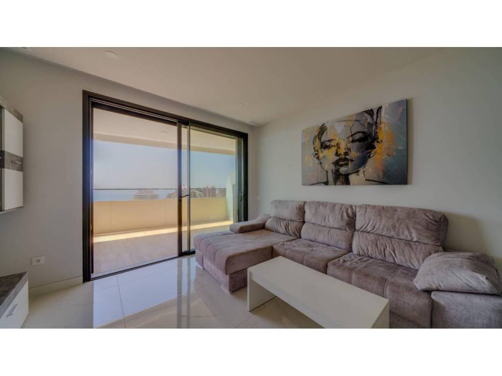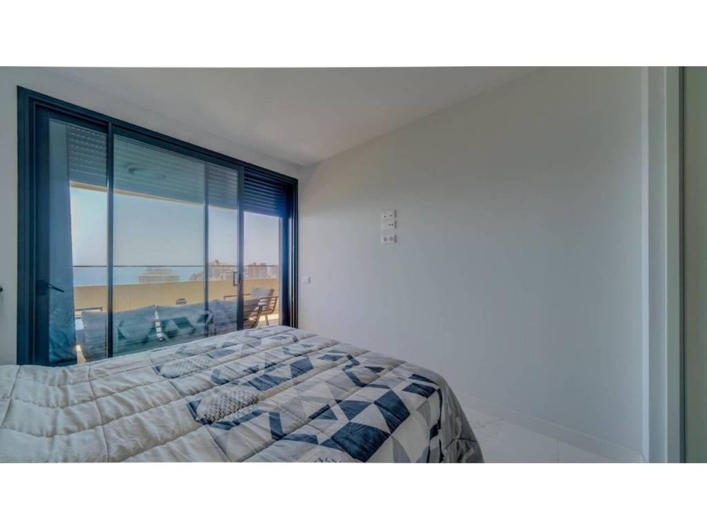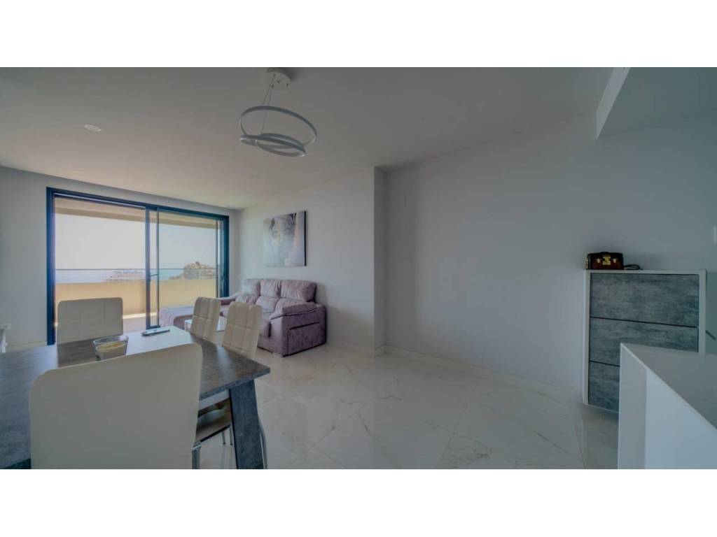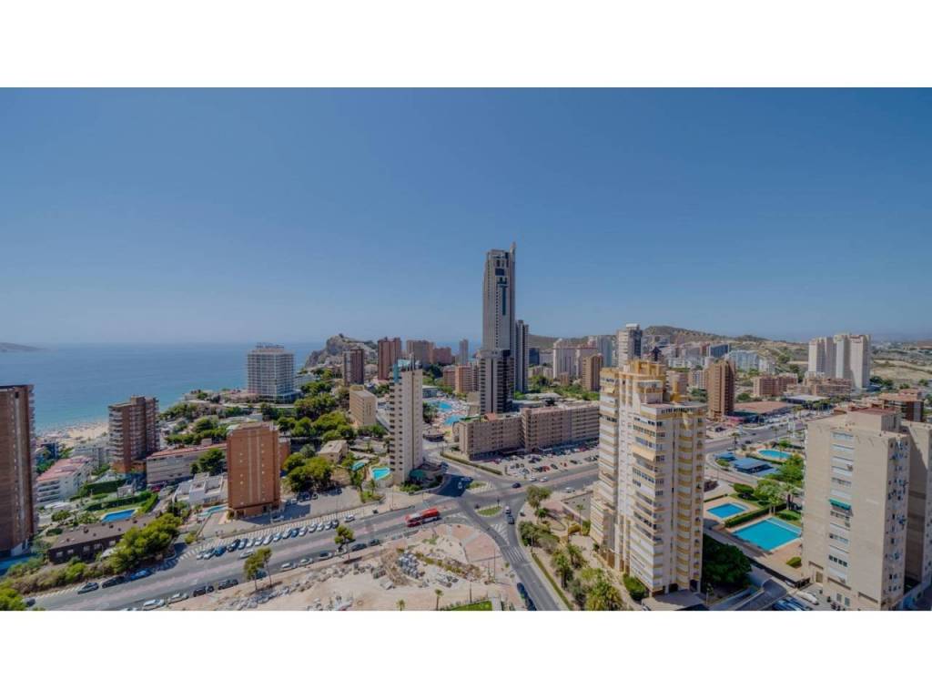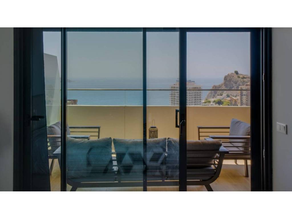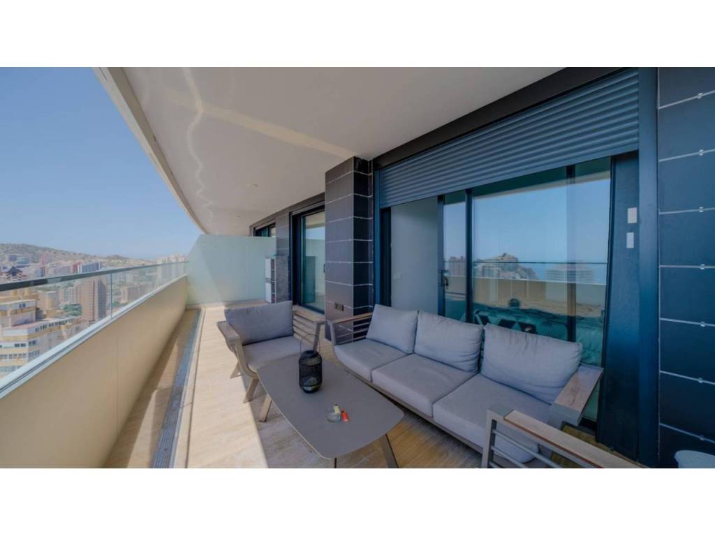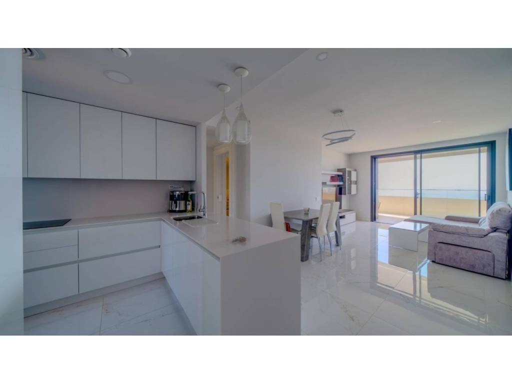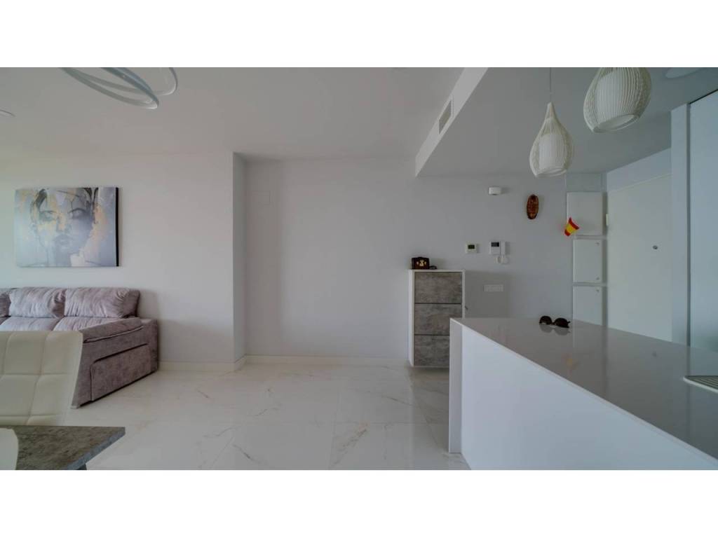 Descubre este impresionante piso situado en la privilegiada zona de la Avenida La Vila Joiosa, que cuenta con una amplia superficie construida de 130 m2 y una encantadora terraza privada de 16 m2. La propiedad seminueva se compone de dos amplias habitaciones dobles y dos modernos baños, ofreciendo un espacio ideal para familias o parejas. Equipado con cocina completa, suelos elegantes de mármol y carpintería interior lacada en blanco, el inmueble destaca por su luminosidad gracias a su orientación este.