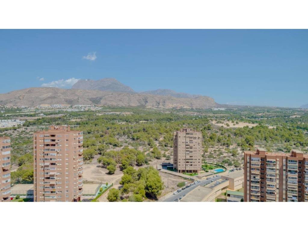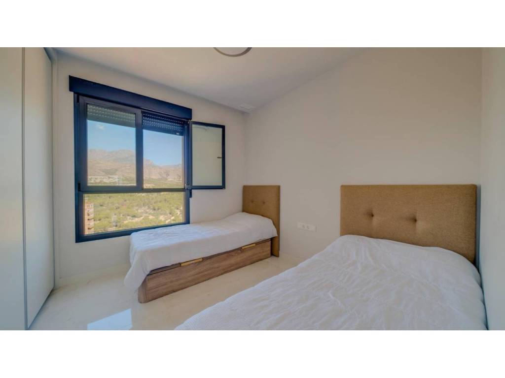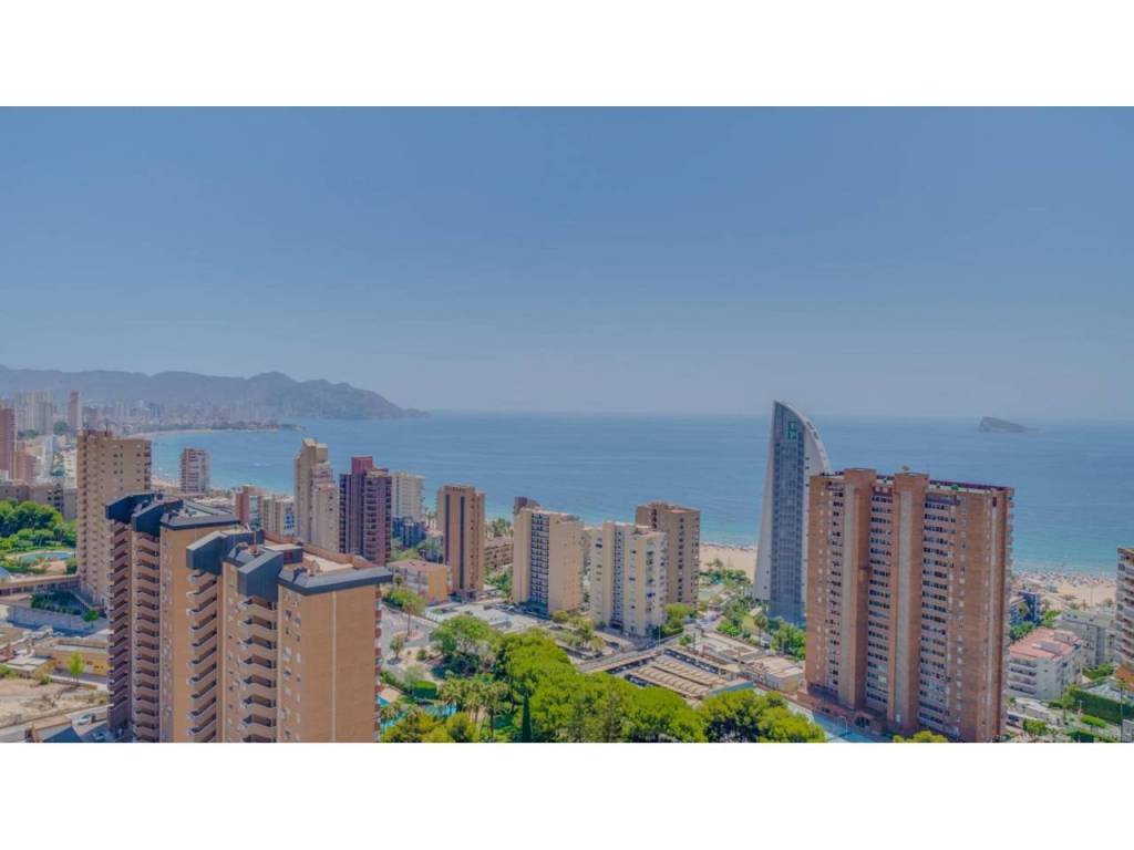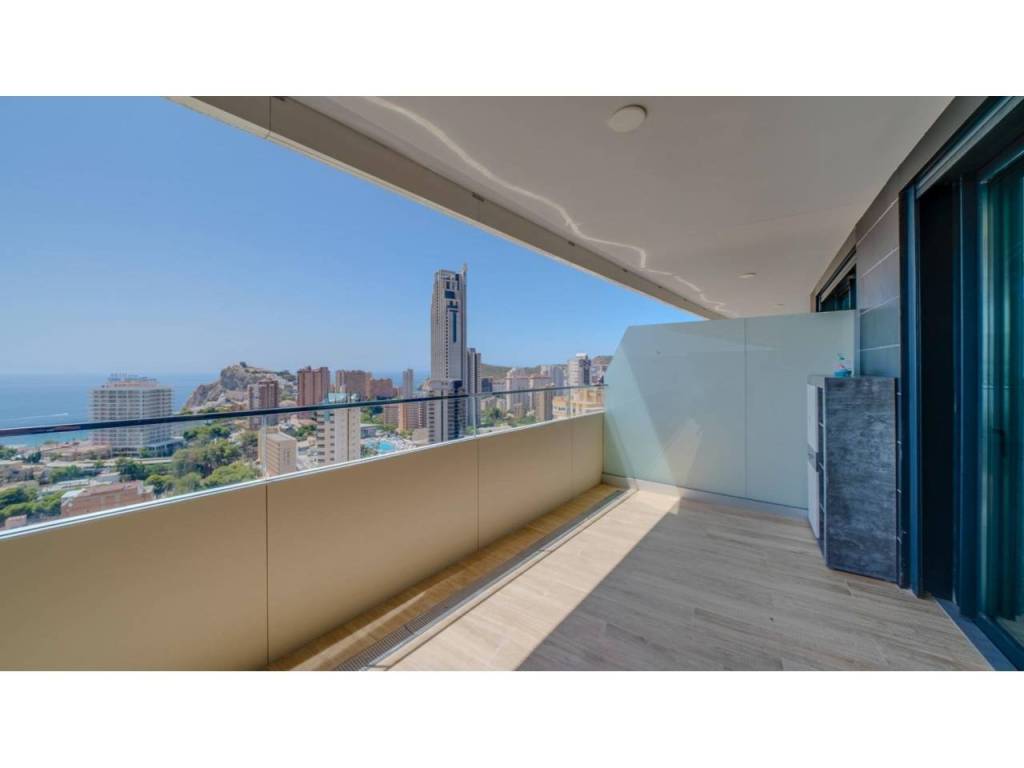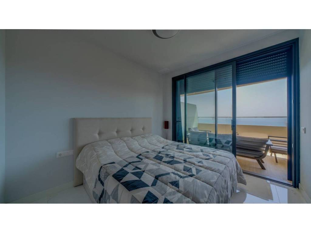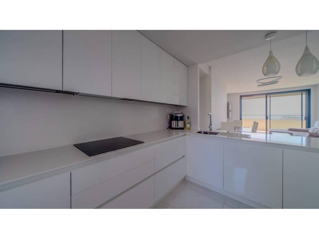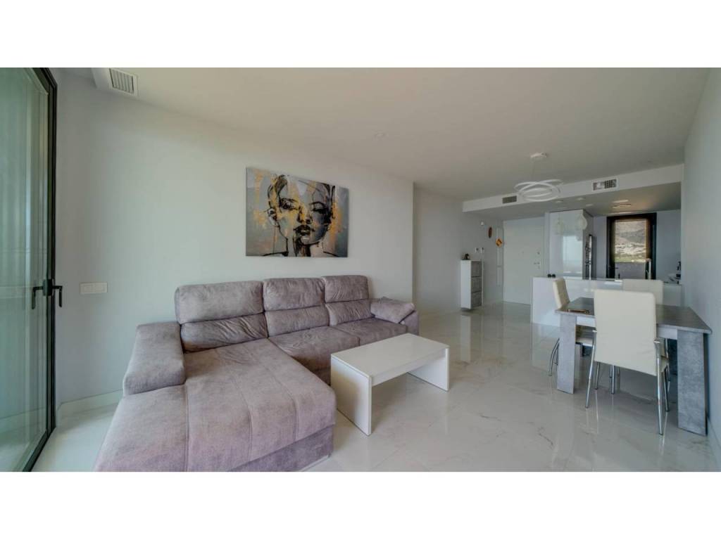 Descubre este impresionante piso situado en la privilegiada zona de la Avenida La Vila Joiosa, que cuenta con una amplia superficie construida de 130 m2 y una encantadora terraza privada de 16 m2. La propiedad seminueva se compone de dos amplias habitaciones dobles y dos modernos baños, ofreciendo un espacio ideal para familias o parejas. Equipado con cocina completa, suelos elegantes de mármol y carpintería interior lacada en blanco, el inmueble destaca por su luminosidad gracias a su orientación este.