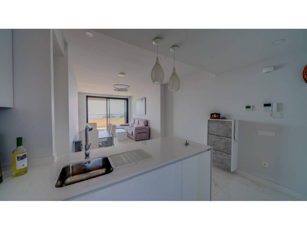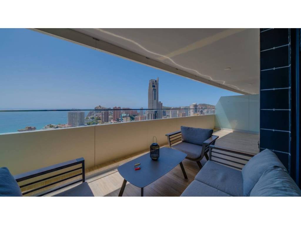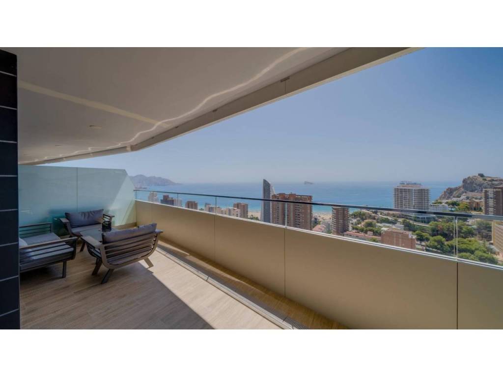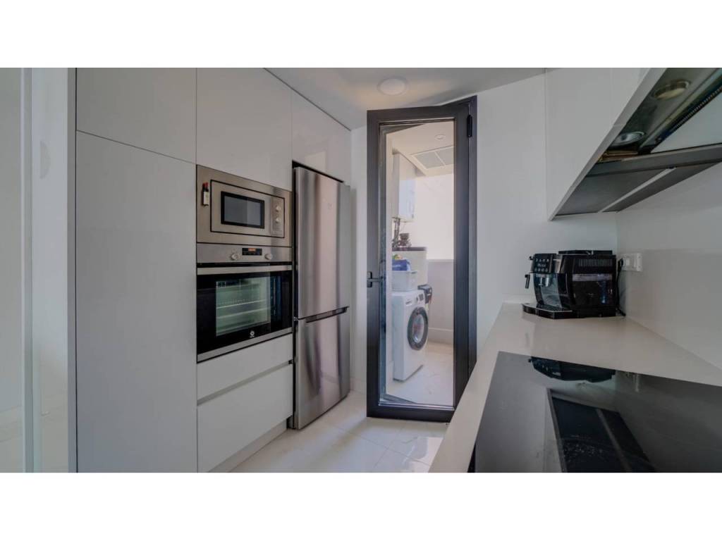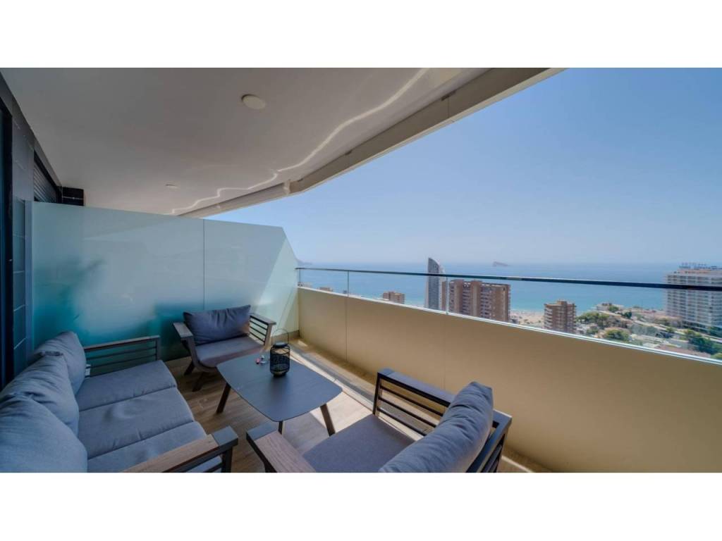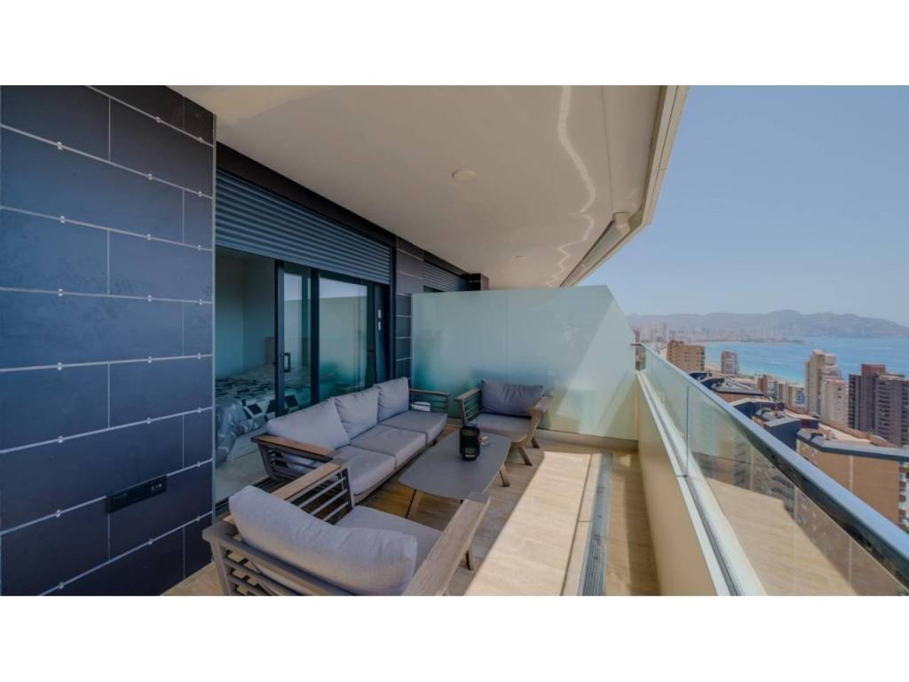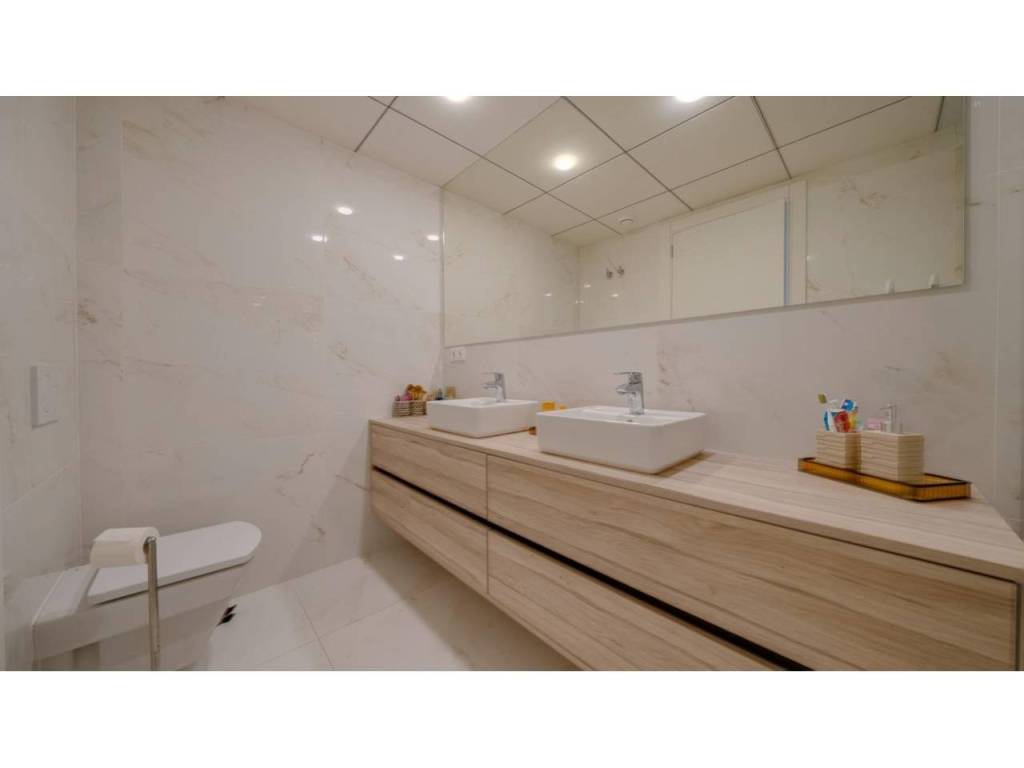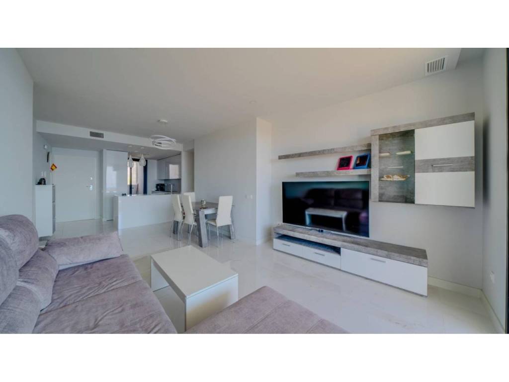 Descubre este impresionante piso situado en la privilegiada zona de la Avenida La Vila Joiosa, que cuenta con una amplia superficie construida de 130 m2 y una encantadora terraza privada de 16 m2. La propiedad seminueva se compone de dos amplias habitaciones dobles y dos modernos baños, ofreciendo un espacio ideal para familias o parejas. Equipado con cocina completa, suelos elegantes de mármol y carpintería interior lacada en blanco, el inmueble destaca por su luminosidad gracias a su orientación este.