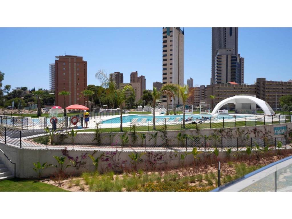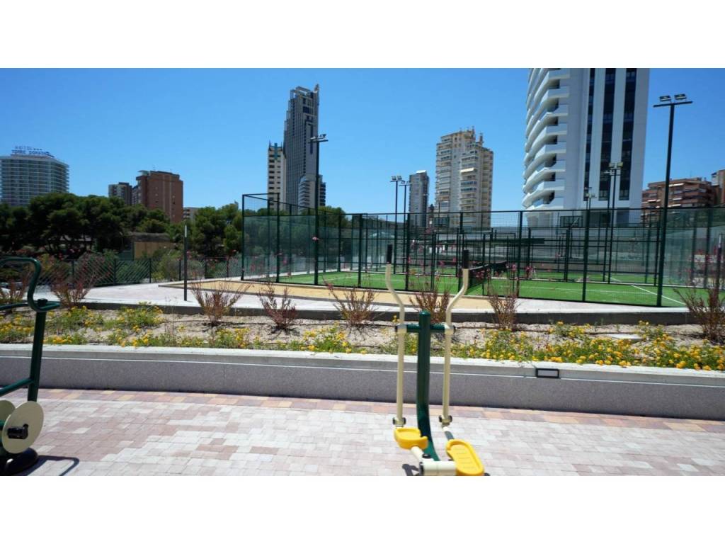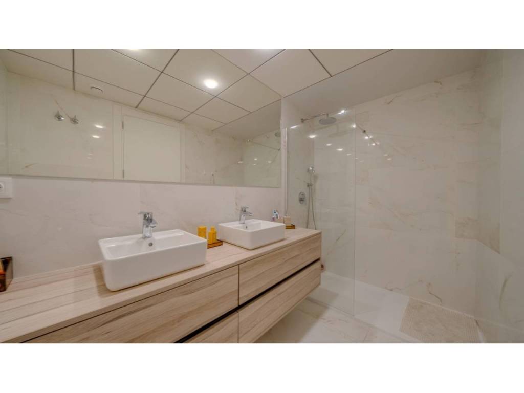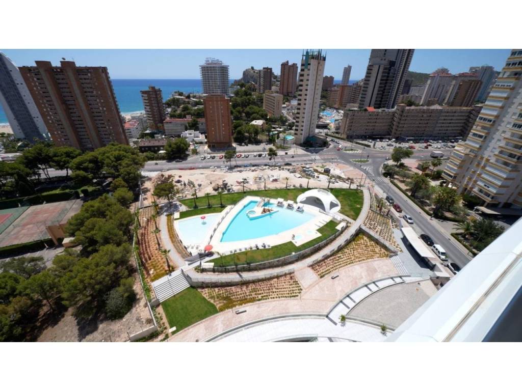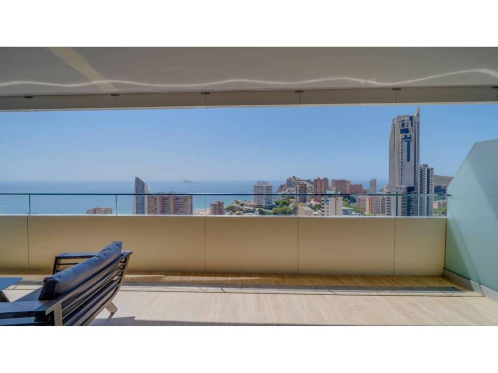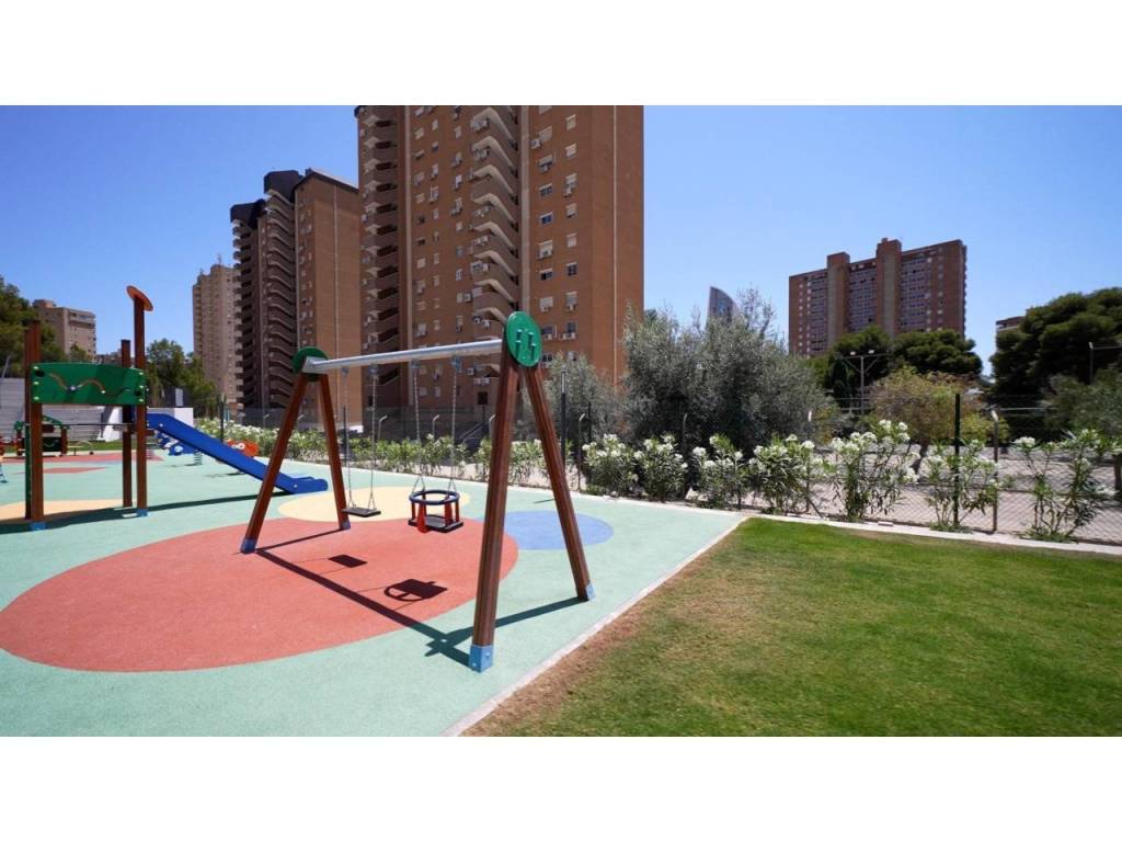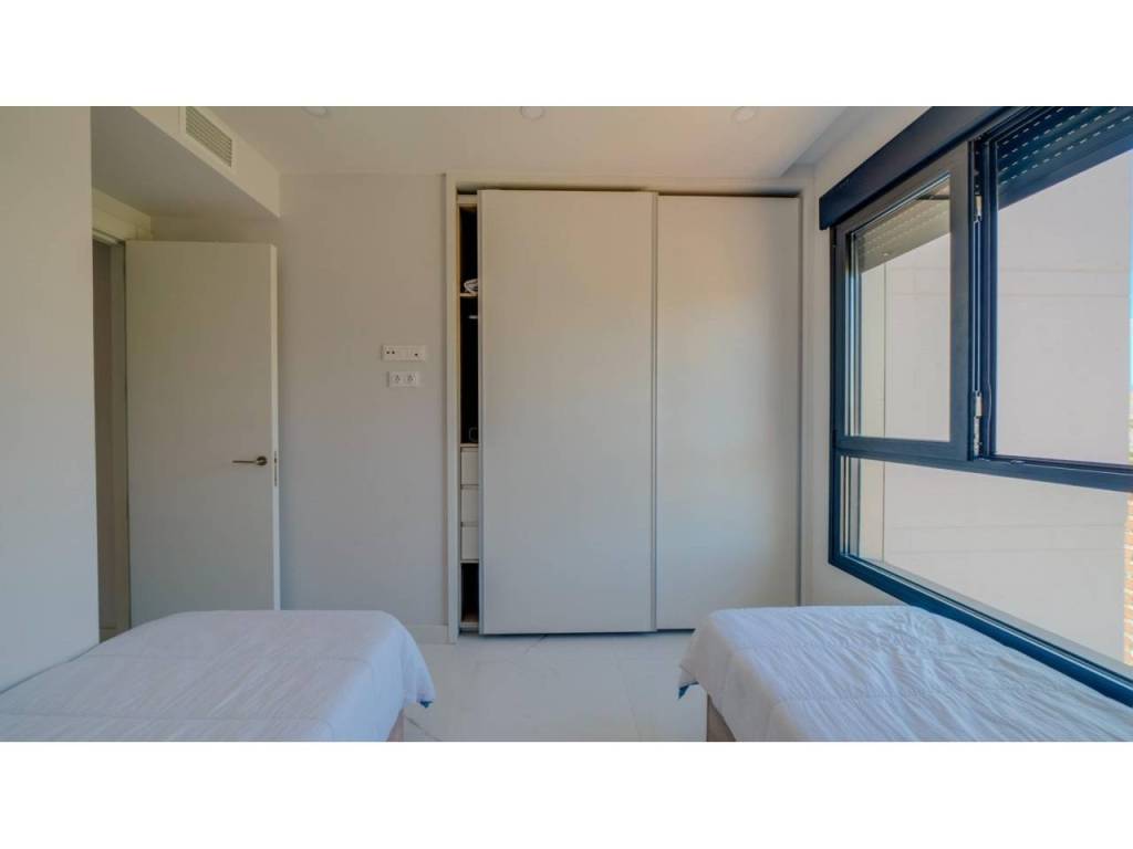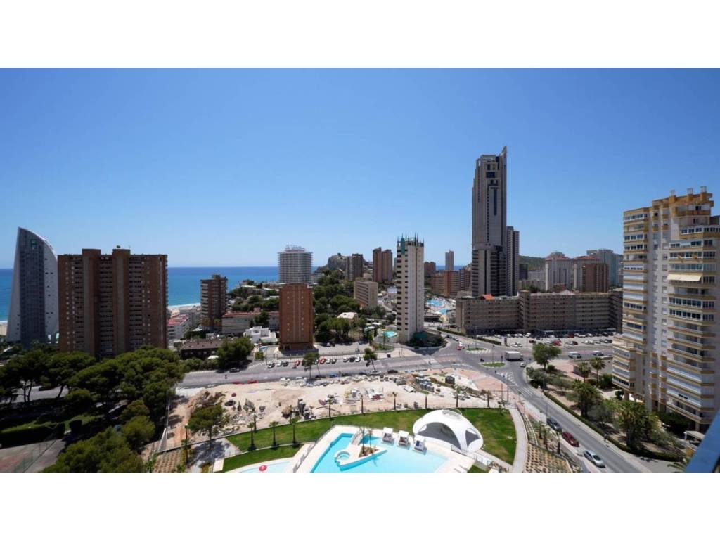 Descubre este impresionante piso situado en la privilegiada zona de la Avenida La Vila Joiosa, que cuenta con una amplia superficie construida de 130 m2 y una encantadora terraza privada de 16 m2. La propiedad seminueva se compone de dos amplias habitaciones dobles y dos modernos baños, ofreciendo un espacio ideal para familias o parejas. Equipado con cocina completa, suelos elegantes de mármol y carpintería interior lacada en blanco, el inmueble destaca por su luminosidad gracias a su orientación este.