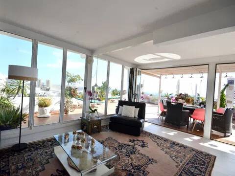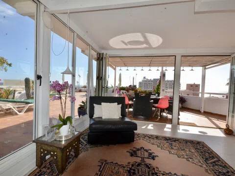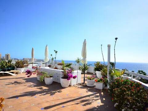 Se vende apartamento de lujo que tiene una terraza con vista al mar y que mide 155m2, mas otra a la entrada de 42m2, ubicado en un complejo en Playa de Las Américas, Costa Adeje Tenerife Sur, Islas Canarias. El interior mide 108 m2, cuenta con 3 habitaciones, 2 terrazas pequeñas de 6 m2 cada una, 2 baños completos con ventanas, lavanderia, cocina independiente, sala de estar luminosa con la entrada cristalada, directa a la hermosa terraza con vista a toda la Playa de Las Américas y vista al mar. La terraza parece un jardín colgante. El apartamento está ubicado en un complejo muy bien mantenido y los propietarios pueden aprovechar de todos los beneficios, como piscinas, televisión vía satélite y wifi. Tiene un parking privado opcional en alquiler. La ubicación es privilegiada, justo en frente de la playa y cerca de todos los servicios e instalaciones. La zona tiene transporte publico, playas, restaurantes, aparcamientos, supermercados, campos de golf, exursiones. Optimo como vivienda residencial o para disfrutar las vacaciones. Los gastos comunitarios incluyen agua y luz. Esta propiedad es única en su ubicación, el área exterior hace la diferencia, es la única en la zona con una terraza tan grande y vista 360º. Puede solicitar una visita sin compromiso o más información a la agencia inmobiliaria Ideal Homes Tenerife.