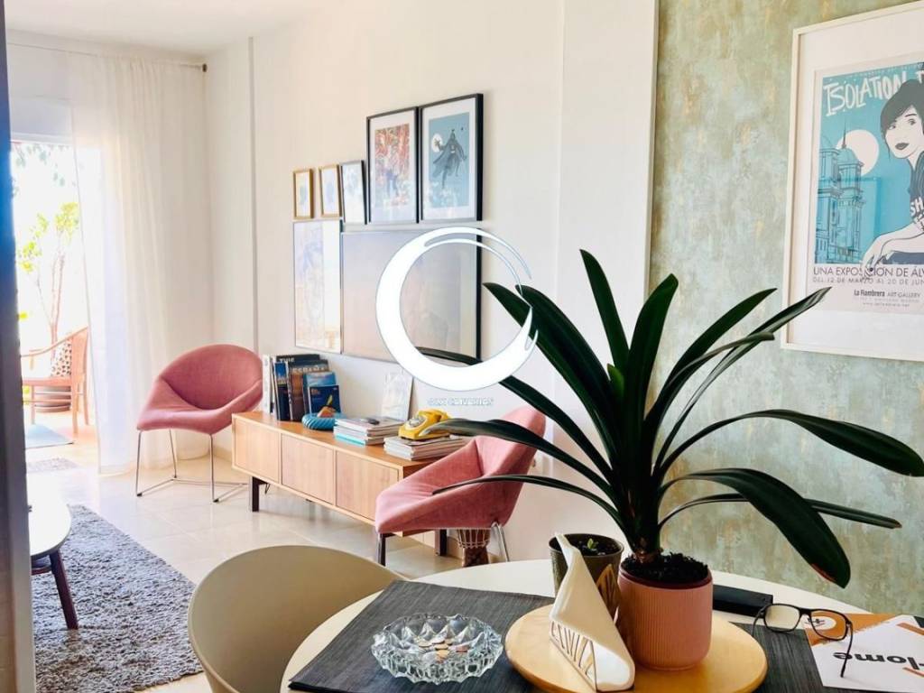 Se vende estupendo piso de 107 m2 distribuido en 2 dormitorios con armarios empotrados, 2 baños completos, amplio y luminoso salón / comedor con acceso directo a espaciosa terraza y jardín privado, cocina abierta completamente equipada, patio trasero. Dispone de aire acondicionado. Se vende amueblado.