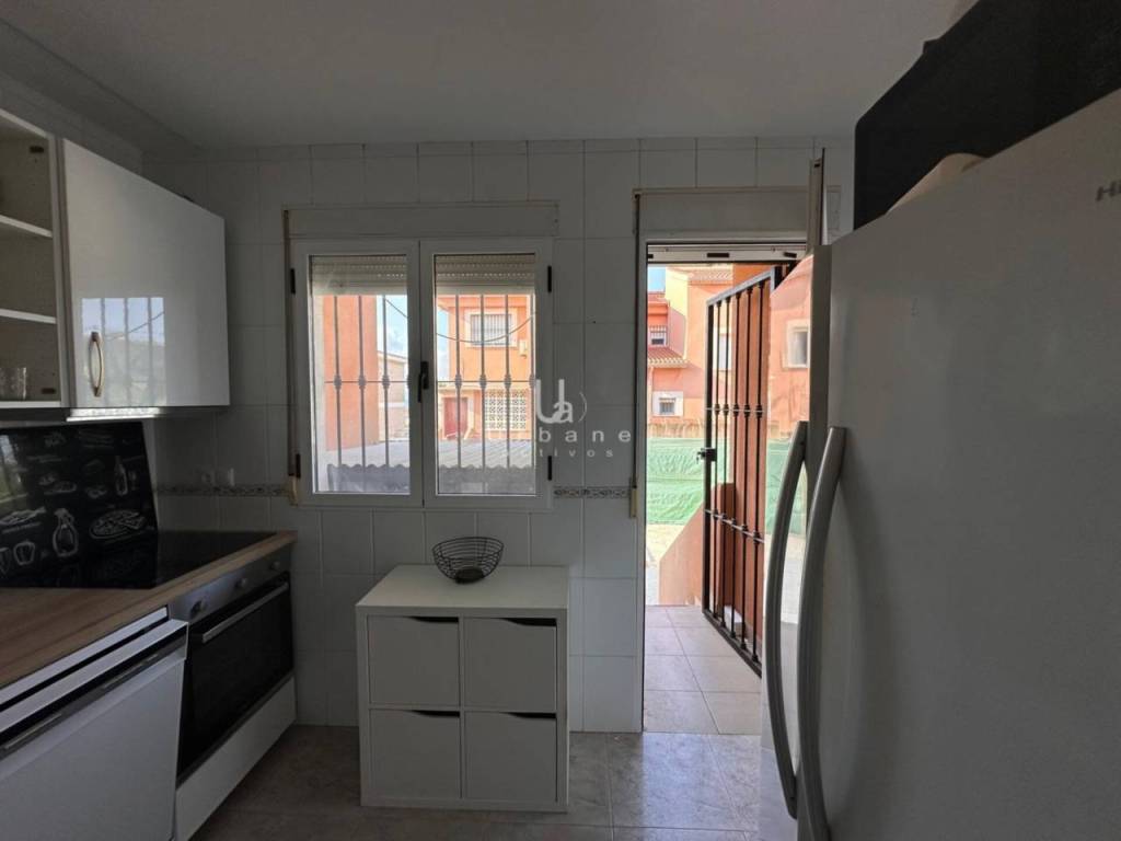 Townhouse in Los Narejos just 50 meters from the beach, spacious house distributed in a front porch with garden, we access the house on the ground floor we have a spacious living room, toilet and separate kitchen with laundry room and pantry with access to a large backyard with storage room. On the first floor three large bedrooms with fitted wardrobes and a full bathroom. In the basement a large garage with capacity for several vehicles, all within a residential complex on the 1st line of the beach with excellent views and all services within walking distance. Don't miss this opportunity, call and request a visit!!!!