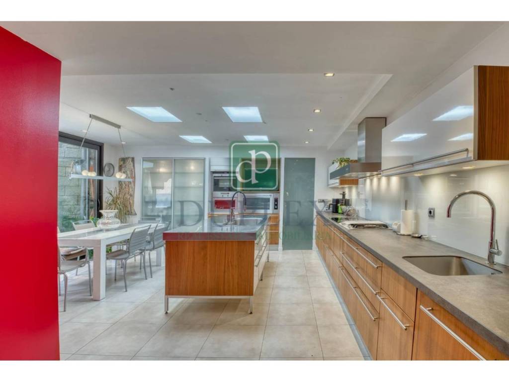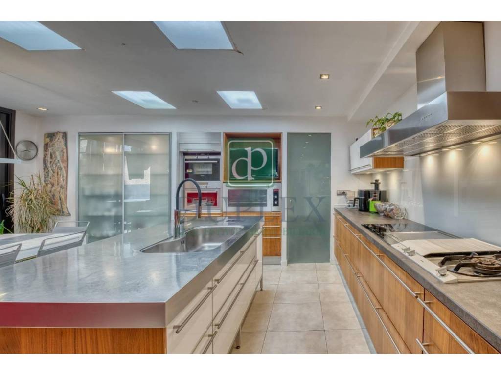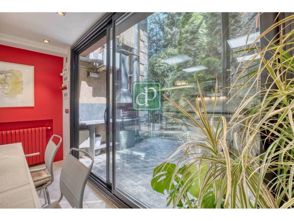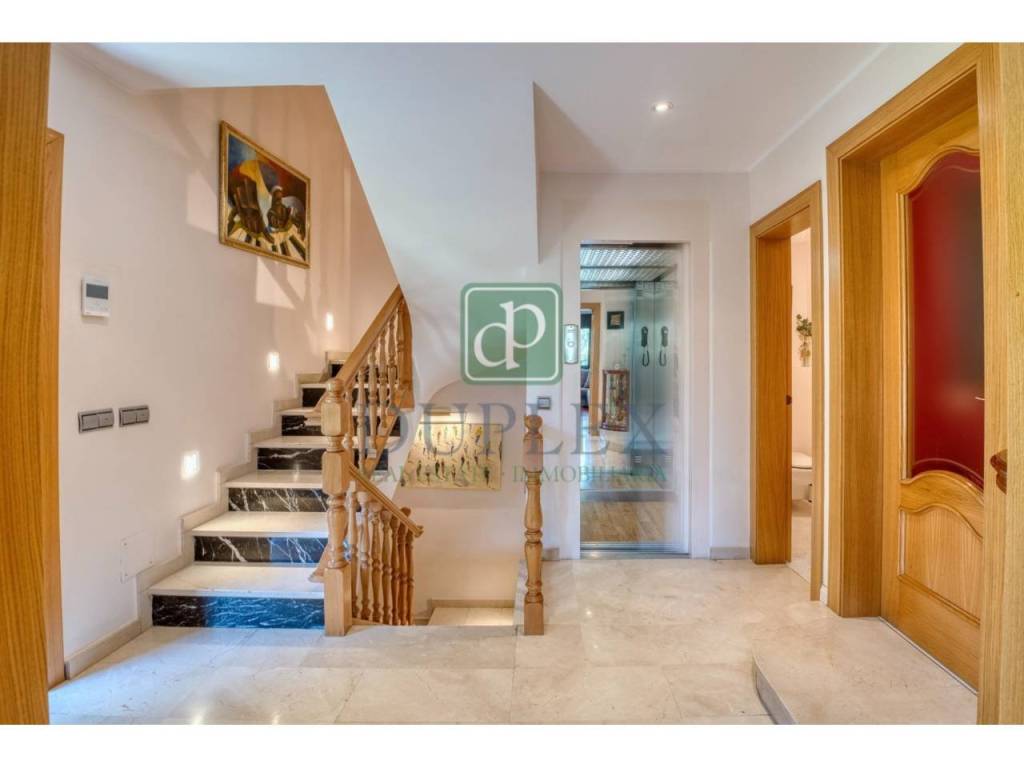 This cozy corner townhouse, designed with three aspects, is surrounded by a large terrace and a 271m2 garden, providing a peaceful and private setting in the heart of the urban area. With a built area of 384m2, the house is distributed over four floors, all connected by a stairwell and an elevator, making it ideal for elderly people or those with reduced mobility.