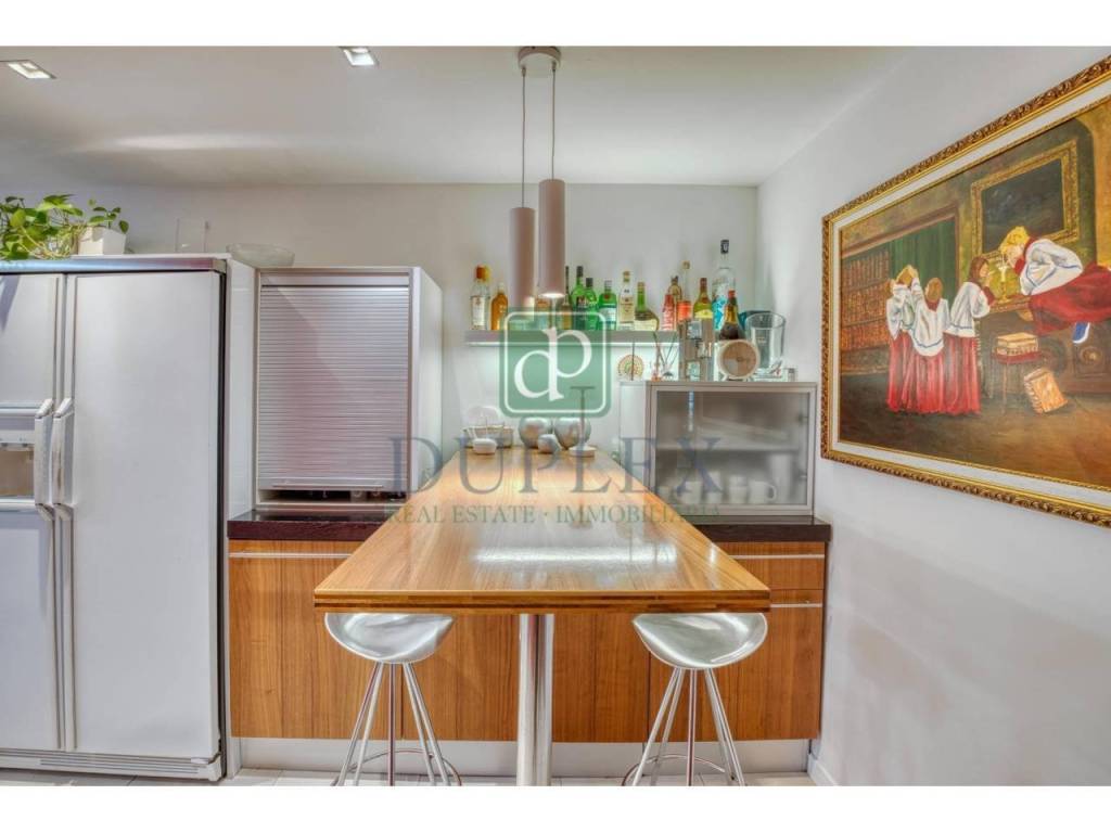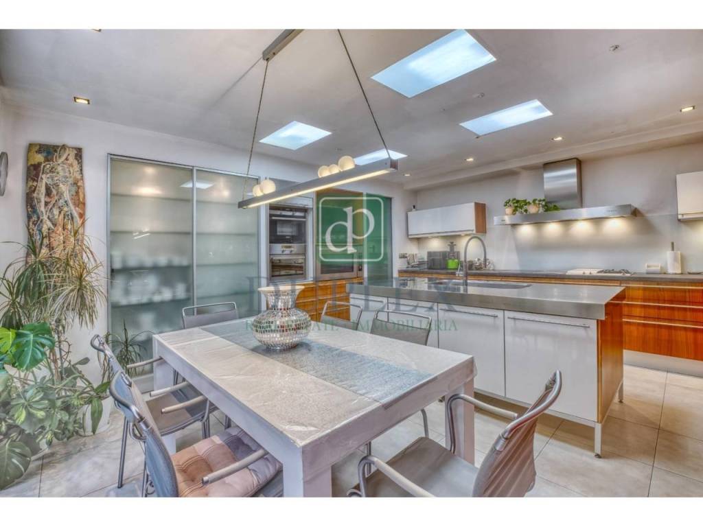 First Floor: This floor houses the day area, with a generous hall, a modern and large kitchen equipped with high-end appliances and a large island, as well as an indoor barbecue. The large living-dining room, with a fireplace, directly connects to the garden and terrace that surround the house, creating a harmonious connection between the interior and exterior.