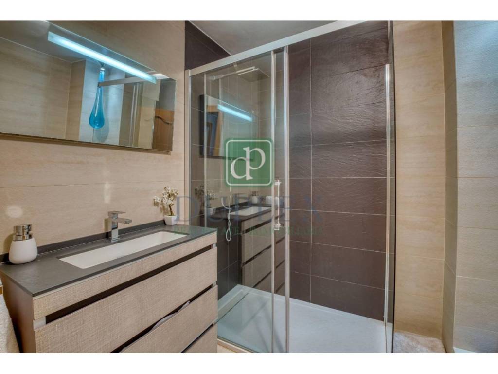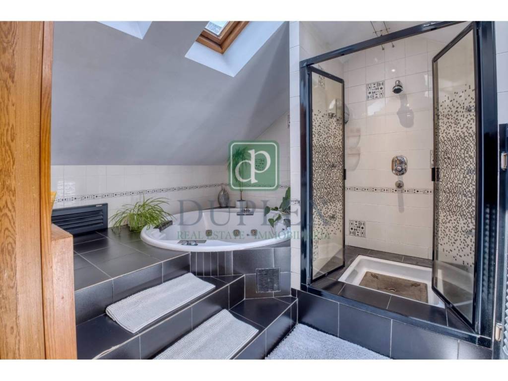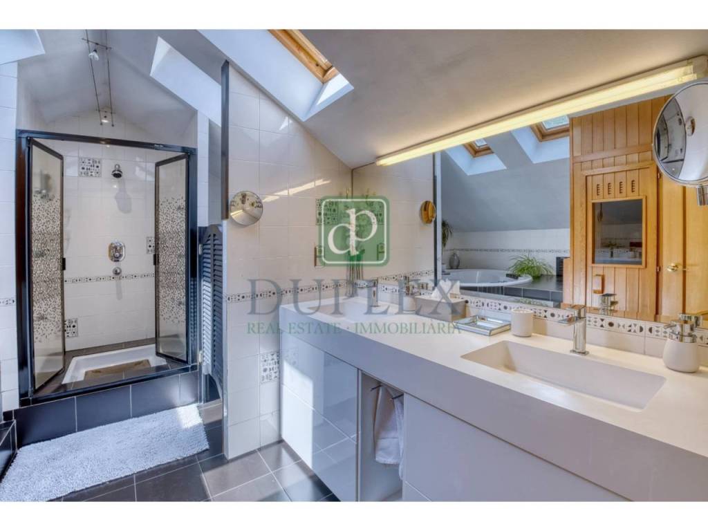 Second and Third Floors: These floors are dedicated to the night area, housing four double bedrooms, all with fitted wardrobes. Two of the bedrooms are suites, with full bathrooms including a whirlpool tub, shower, and Finnish sauna. The other two bedrooms share an additional bathroom. From the second floor, there is also access to a garden area that connects via stairs to the main garden on the first floor.