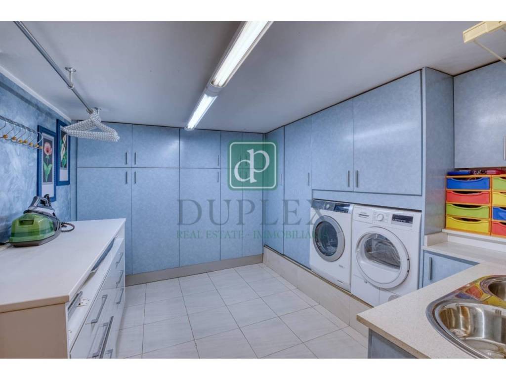 Ground Floor: It features a spacious garage with capacity for two vehicles, a storage area, a machine room, and a large laundry room, offering a functional space for daily needs.