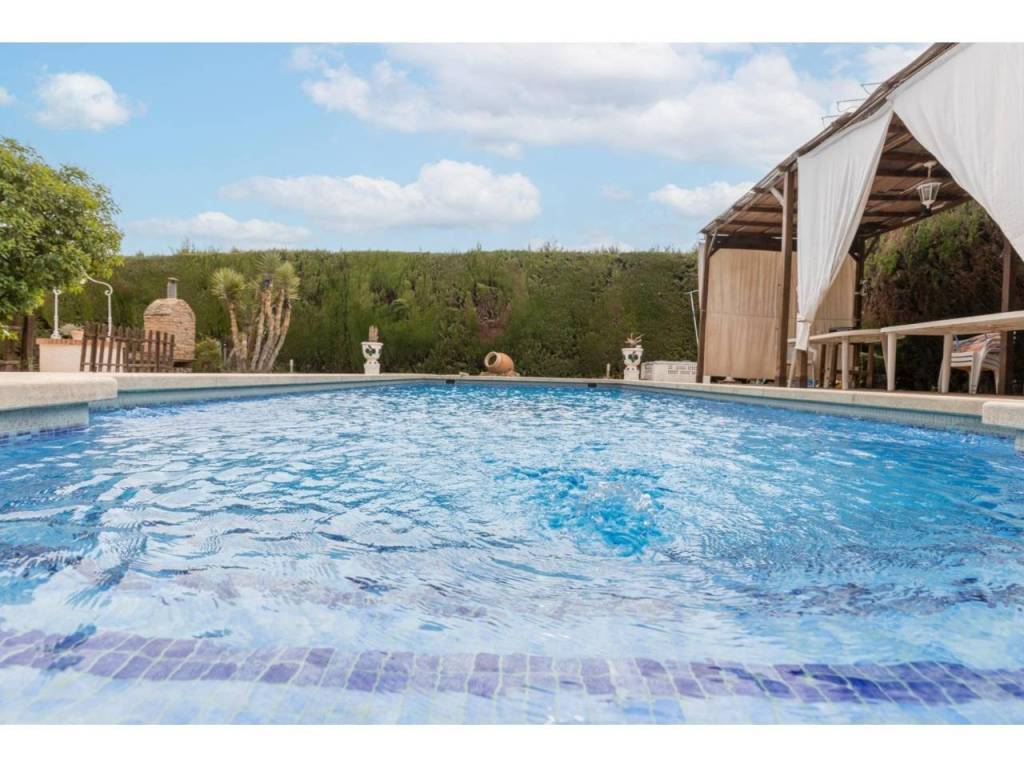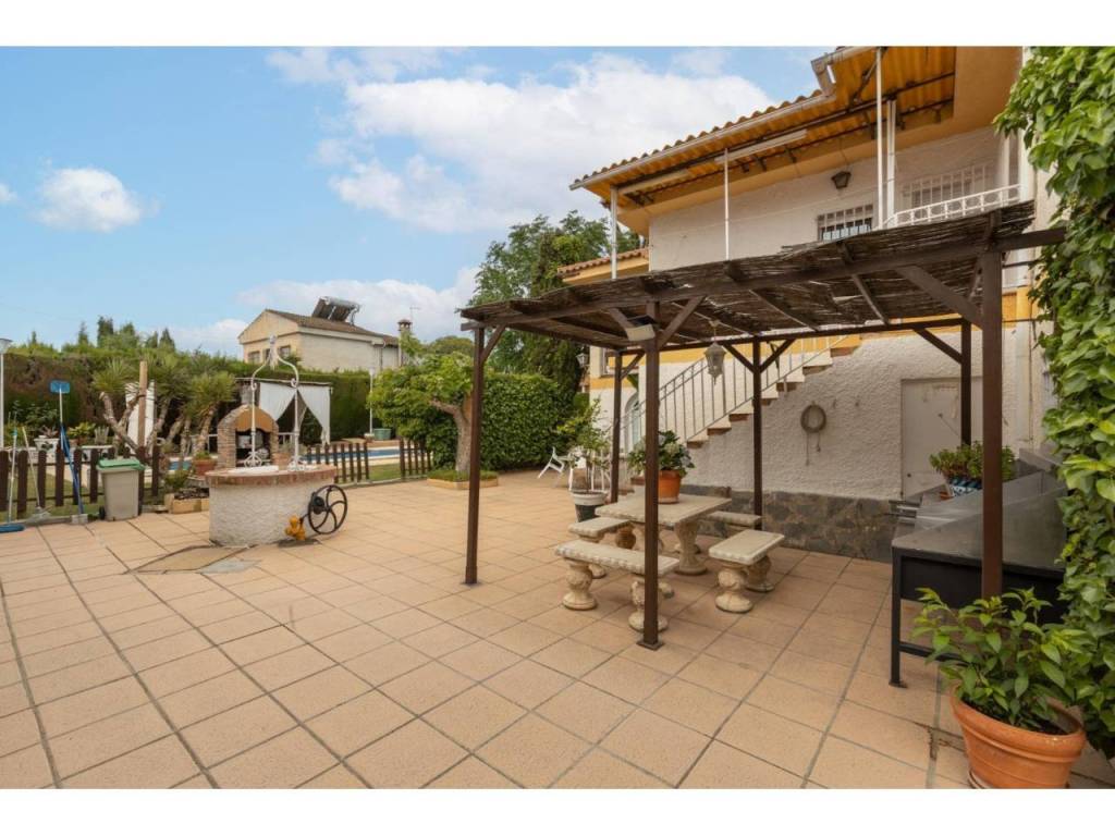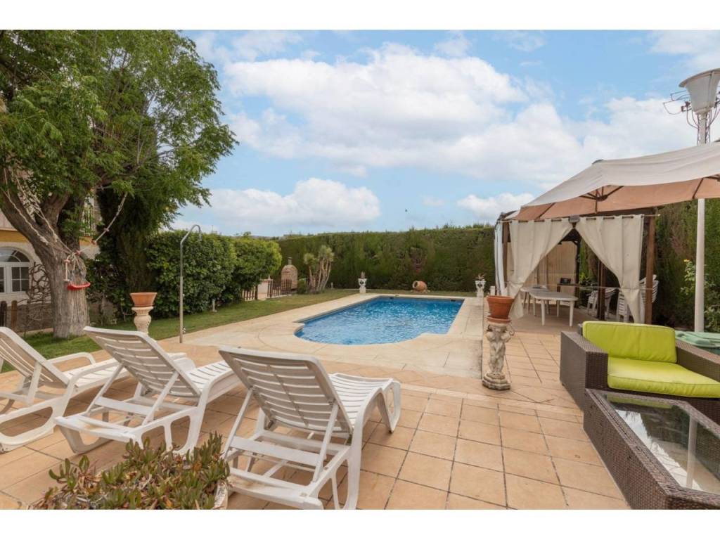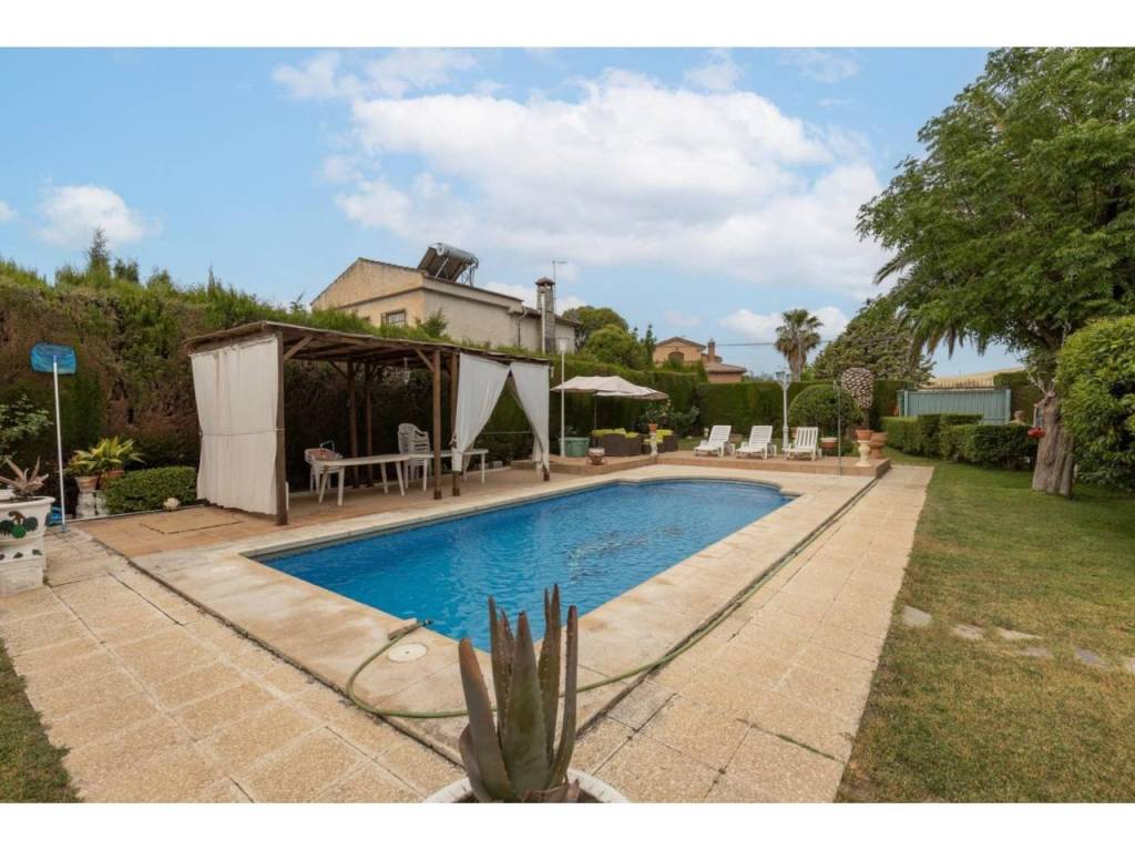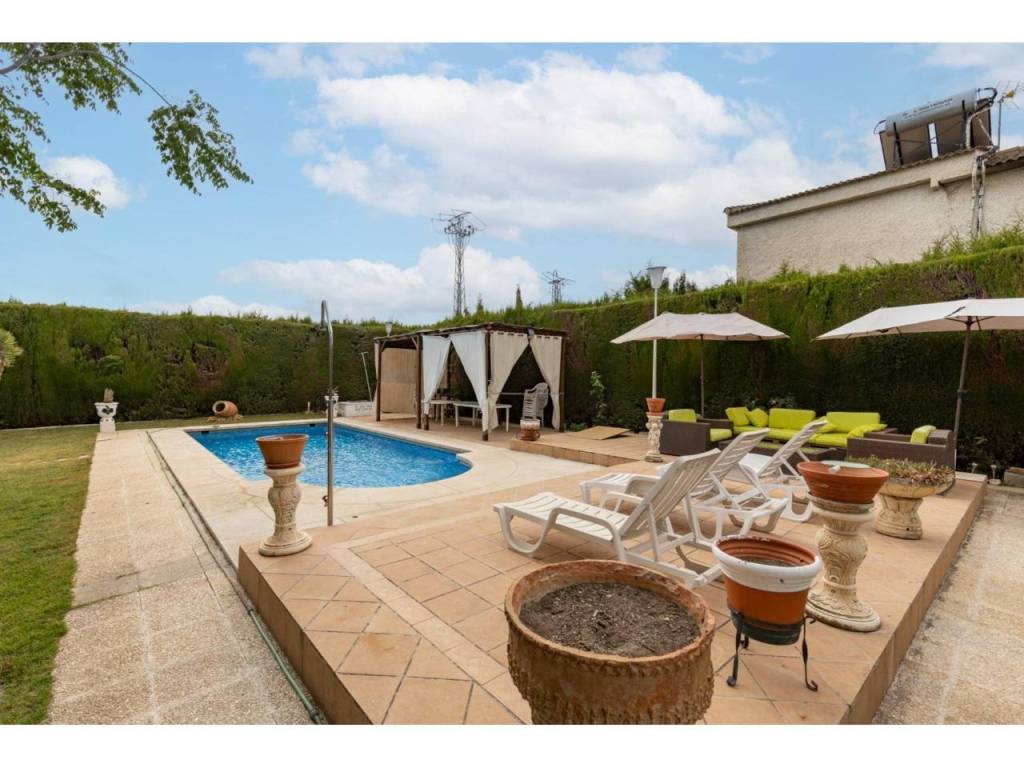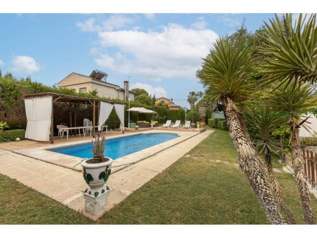 Zona exterior: Entrada a dos calles con portones automáticos, zona de aparcamiento, una preciosa piscina rodeada de césped y vegetación, y un mágico rincón donde disfrutar de unas maravillosas barbacoas.