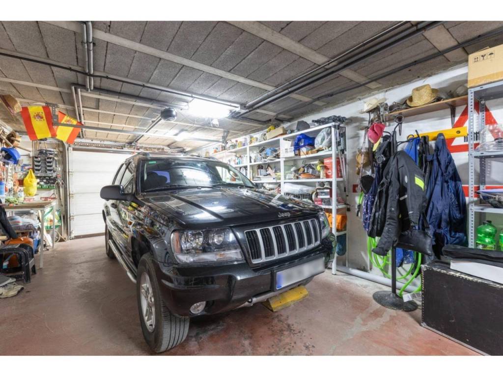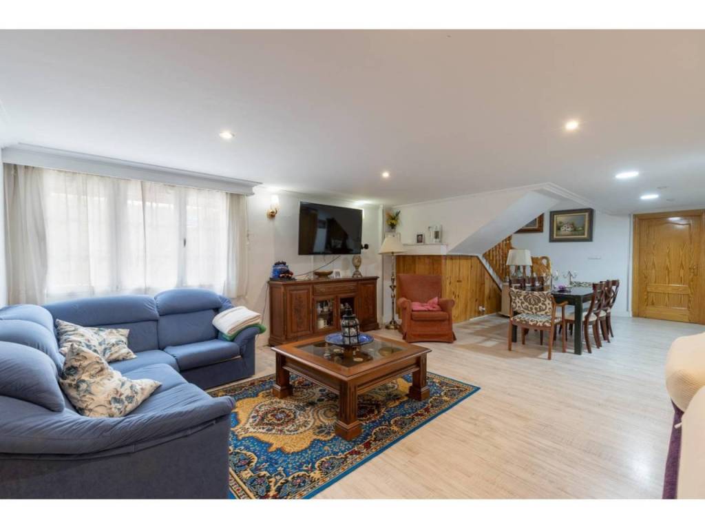 Planta baja: Amplia sala con grandes ventanales, un gran salón comedor, cocina americana, dormitorio doble, baño y aparcamiento para dos vehículos.