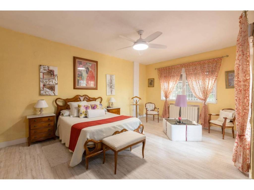 Planta primera: Gran recibidor, seis dormitorios, uno de ellos con chimenea y una preciosa terraza. Vestidor y un baño.